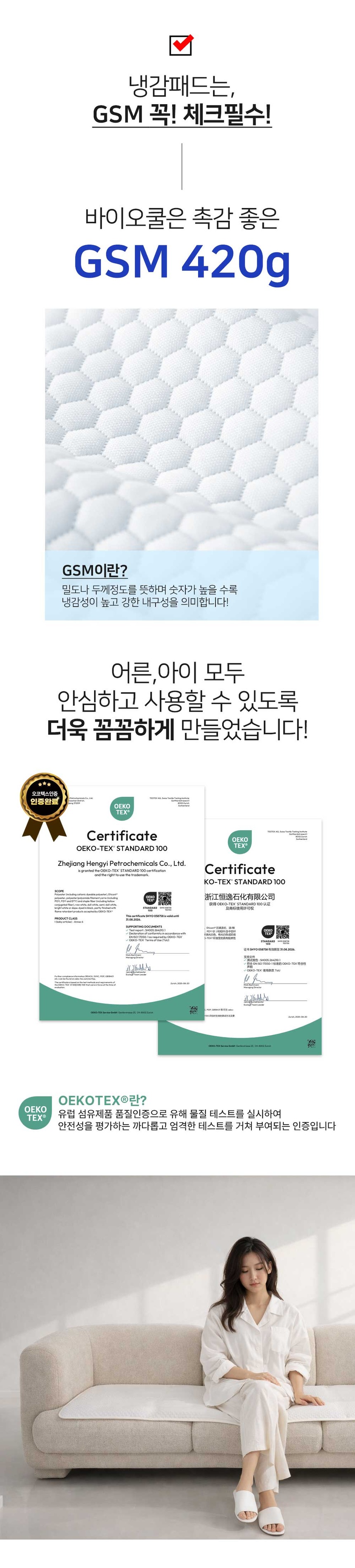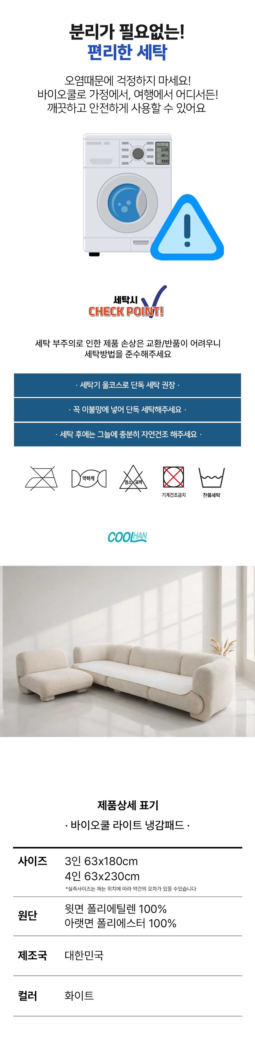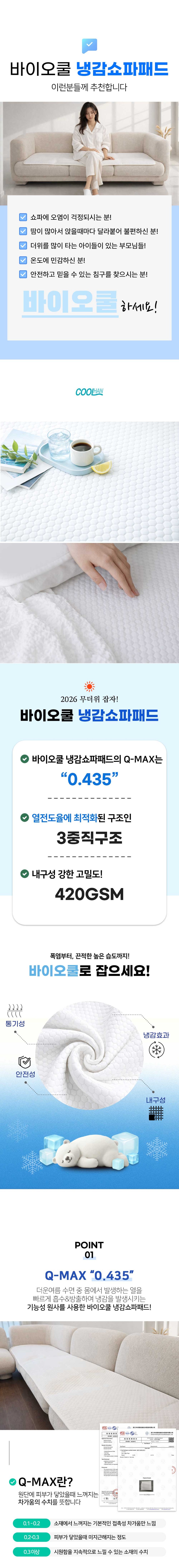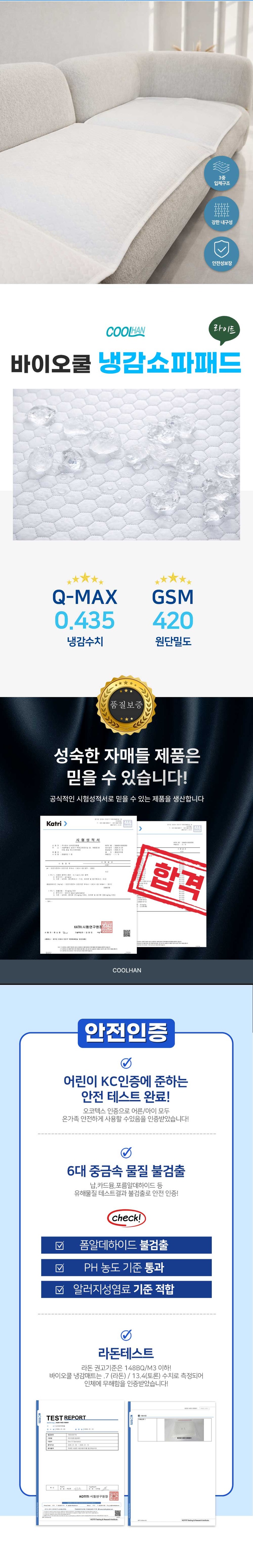 [BIOCOOL] 바이오쿨 고밀도 550 냉감 쇼파패드 4인용