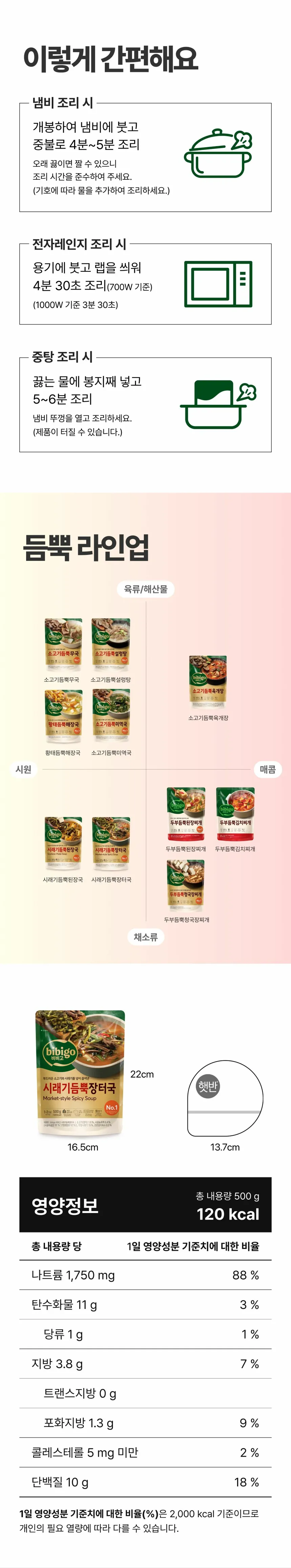 비비고 시래기 듬뿍 장터국 500g x18개
