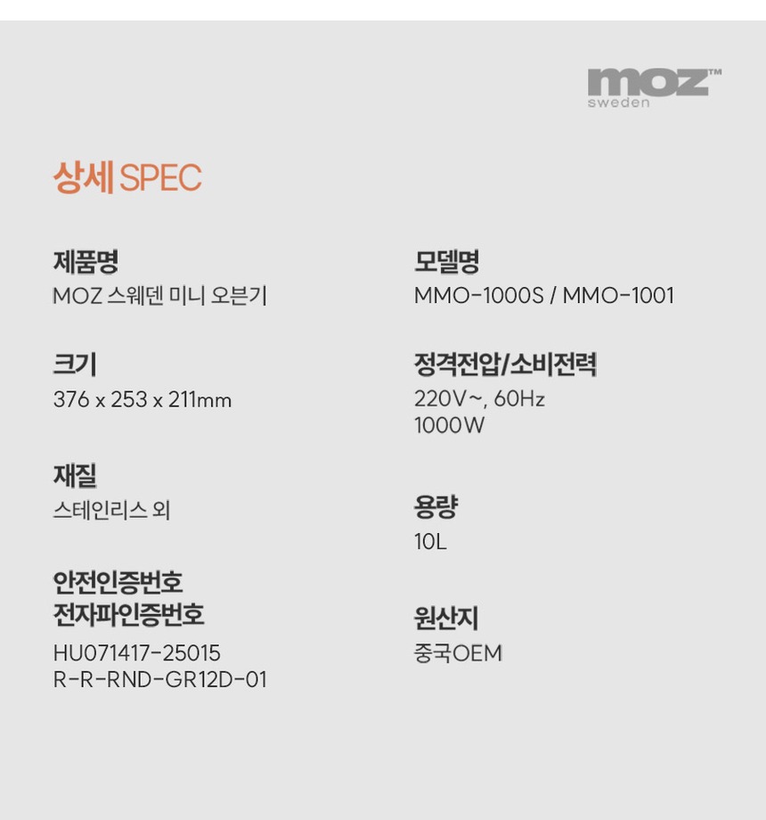 [MOZ] 모즈스웨덴 미니 오븐기 MMO-1000S