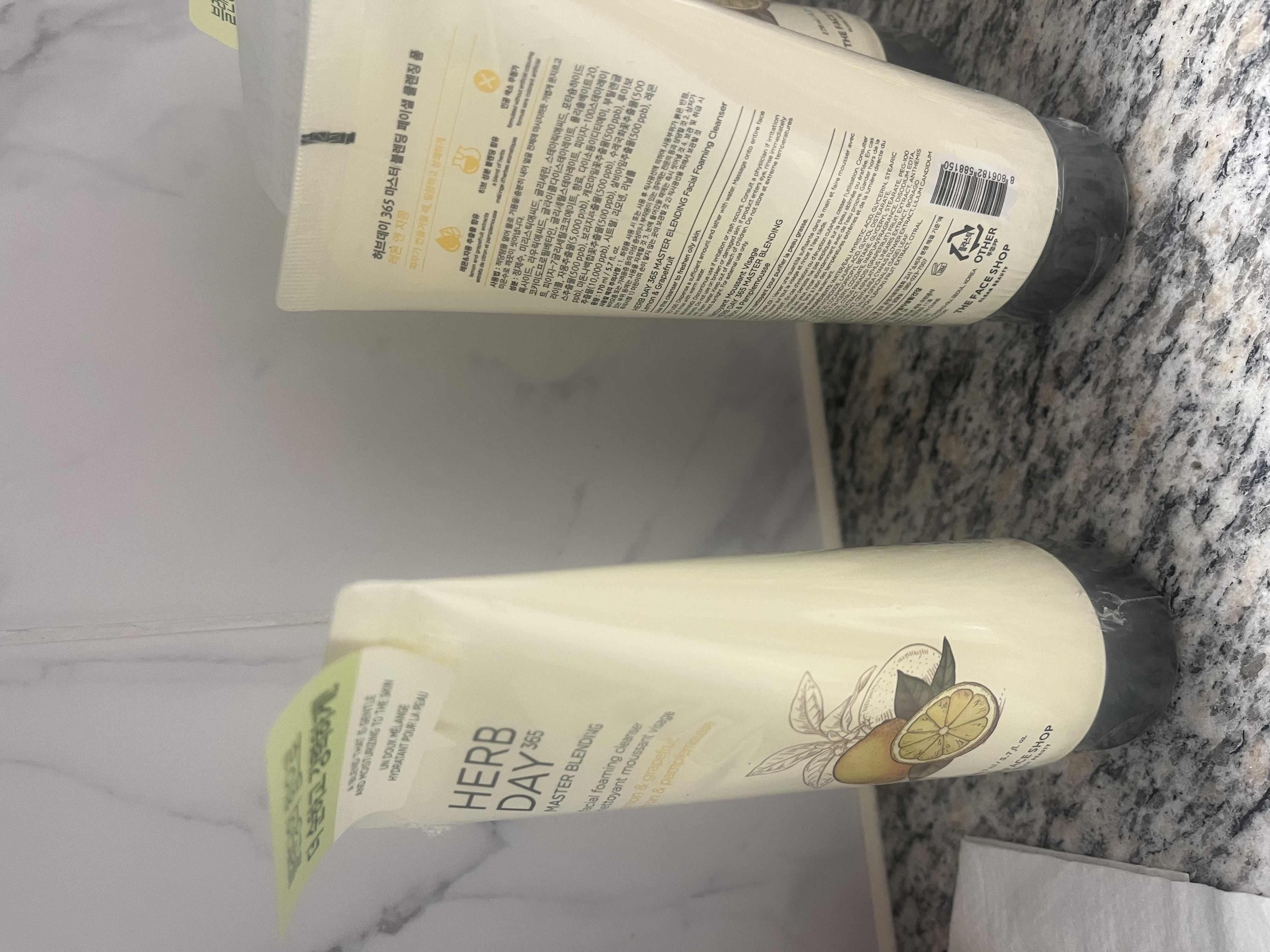 | 화장품법에 따라 기재·표시하여야 하는 모든 성분 | "1. 아세로라&블루베리 : 정제수, 미리스틱애씨드, 글리세린, 스테아릭애씨드, 포타슘하이드록사이드, 라우릭애씨드, 글라이콜다이스테아레이트, 폴리솔베이트20, 코카미도프로필베타인, 글리세릴스테아레이트, 피이지-100스테아레이트, 피이지-7글리세릴코코에이트, 향료, 다이소듐이디티에이, 부틸렌글라이콜, 캐모마일꽃추출물(500ppb), 루이보스추출물(500ppb), 보리지추출물(500ppb), 수레국화꽃추출물(500ppb), 마돈나백합꽃추출물(500ppb), 살비아잎추출물(500ppb), 아사이팜열매추출물, 인디안구스베리열매추출물, 로우스위트블루베리추출물(100ppb), 바베이도스체리추출물(1,000ppb), 시트로넬올, 리모넨, 헥실신남알, 리날룰 2. 알로에&그린티 : 정제수, 미리스틱애씨드, 글리세린, 스테아릭애씨드, 포타슘하이드록사이드, 라우릭애씨드, 글라이콜다이스테아레이트, 폴리솔베이트20, 코카미도프로필베타인, 글리세릴스테아레이트, 피이지-100스테아레이트, 피이지-7글리세릴코코에이트, 향료, 다이소듐이디티에이, 부틸렌글라이콜, 1,2-헥산다이올, 알로에베라잎추출물(10,000ppb), 녹차추출물(1,000ppb), 캐모마일꽃추출물(500ppb), 루이보스추출물(500ppb), 보리지추출물(500ppb), 수레국화꽃추출물(500ppb), 마돈나백합꽃추출물(500ppb), 살비아잎추출물(500ppb), 알파-아이소메틸아이오논, 제라니올 3. 레몬&자몽 : 정제수, 미리스틱애씨드, 글리세린, 스테아릭애씨드, 포타슘하이드록사이드, 라우릭애씨드, 글라이콜다이스테아레이트, 폴리솔베이트20, 코카미도프로필베타인, 글리세릴스테아레이트, 피이지-100스테아레이트, 피이지-7글리세릴코코에이트, 향료, 다이소듐이디티에이, 부틸렌글라이콜, 자몽추출물(5,000ppb), 캐모마일꽃추출물(500ppb), 루이보스추출물(500ppb), 보리지추출물(500ppb), 수레국화꽃추출물(500ppb), 마돈나백합꽃추출물(500ppb), 살비아잎추출물(500ppb), 레몬추출물(10,000ppb), 시트랄, 리모넨, 리날룰 4. 복숭아&무화과 : 정제수, 미리스틱애씨드, 글리세린, 스테아릭애씨드, 포타슘하이드록사이드, 라우릭애씨드, 글라이콜다이스테아레이트, 폴리솔베이트20, 코카미도프로필베타인, 글리세릴스테아레이트, 피이지-100스테아레이트, 피이지-7글리세릴코코에이트, 향료, 다이소듐이디티에이, 부틸렌글라이콜, 복숭아추출물(10,000ppb), 캐모마일꽃추출물(500ppb), 루이보스추출물(500ppb), 보리지추출물(500ppb), 수레국화꽃추출물(500ppb), 마돈나백합꽃추출물(500ppb), 살비아잎추출물(500ppb), 크랜베리추출물, 석류나무추출물, 양벚나무열매추출물, 무화과추출물(200ppb), 가지열매추출물, 기장추출물, 호밀추출물, 벤질벤조에이트, 리모넨, 헥실신나몰, 리날룰 5. 녹두&쑥 : 정제수,미리스틱애씨드,글리세린,스테아릭애씨드,포타슘하이드록사이드,라우릭애씨드,글라이콜다이스테아레이트,폴리솔베이트20,코카미도프로필베타인,글리세릴스테아레이트,피이지-100스테아레이트,피이지-7글리세릴코코에이트,향료,다이소듐이디티에이,부틸렌글라이콜,1,2-헥산다이올,녹두씨추출물(15,000ppb),쑥잎추출물(2,000ppb),인삼추출물,각시둥굴레뿌리줄기/뿌리추출물,하수오뿌리추출물,캐모마일꽃추출물(500ppb),루이보스추출물(500ppb),보리지추출물(500ppb),수레국화꽃추출물(500ppb),마돈나백합꽃추출물(500ppb),살비아잎추출물(500ppb),자작나무껍질추출물,소리쟁이뿌리추출물,리모넨,헥실신나몰,리날룰,부틸페닐메틸프로피오날" |