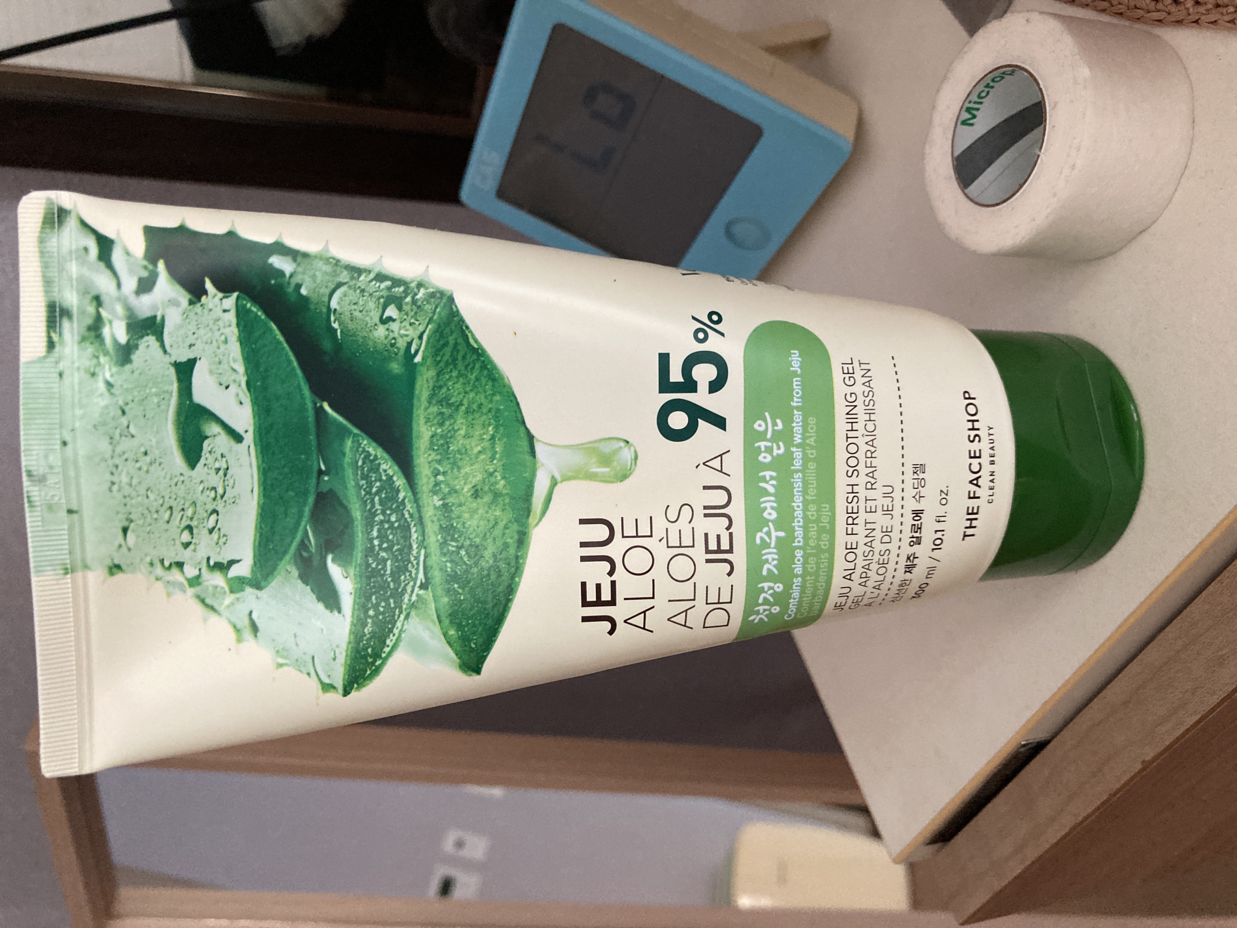 | 화장품법에 따라 기재·표시하여야 하는 모든 성분 | 알로에베라잎수(95.00028%), 부틸렌글라이콜, 변성알코올, 병풀추출물, 호장근뿌리추출물, 황금추출물, 녹차추출물, 스페인감초뿌리추출물, 마트리카리아꽃추출물, 로즈마리잎추출물, 정제수, 판테놀, 에틸헥실글리세린, 다이프로필렌글라이콜, 카보머, 소듐폴리아크릴레이트, 피이지-40하이드로제네이티드캐스터오일, 페녹시에탄올, 트라이에탄올아민, 다이소듐이디티에이, 향료, 리날룰, 리모넨 |