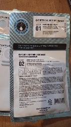 2제: 퀵수딩에스오에스마스크 정제수, 프로판다이올, 프로방스장미꽃수, 1,2-헥산다이올, 부틸렌글라이콜, 하이드록시아세토페논, 알지닌, 소듐폴리아크릴레이트, 시트릭애씨드, 알란토인, 판테놀, 쇠비름추출물, 구름버섯추출물, 동충하초추출물, 포타슘알룸, 소듐하이알루로네이트, 병풀추출물, 바다포도추출물, 더덕뿌리추출물, 레몬밤잎추출물, 무화과추출물, 석류추출물, 소듐시트레이트, 로즈마리잎추출물, 마트리카리아꽃추출물, 피이지-60아몬드글리세라이즈, 카프릴릴글라이콜, 글리세린, 소듐벤조에이트, 포타슘솔베이트, 카보머, 노르다이하이드로구아이아레틱애씨드, 소듐메타바이설파이트, 올레아놀릭애씨드, 바이오틴, 다이소듐이디티에이" |