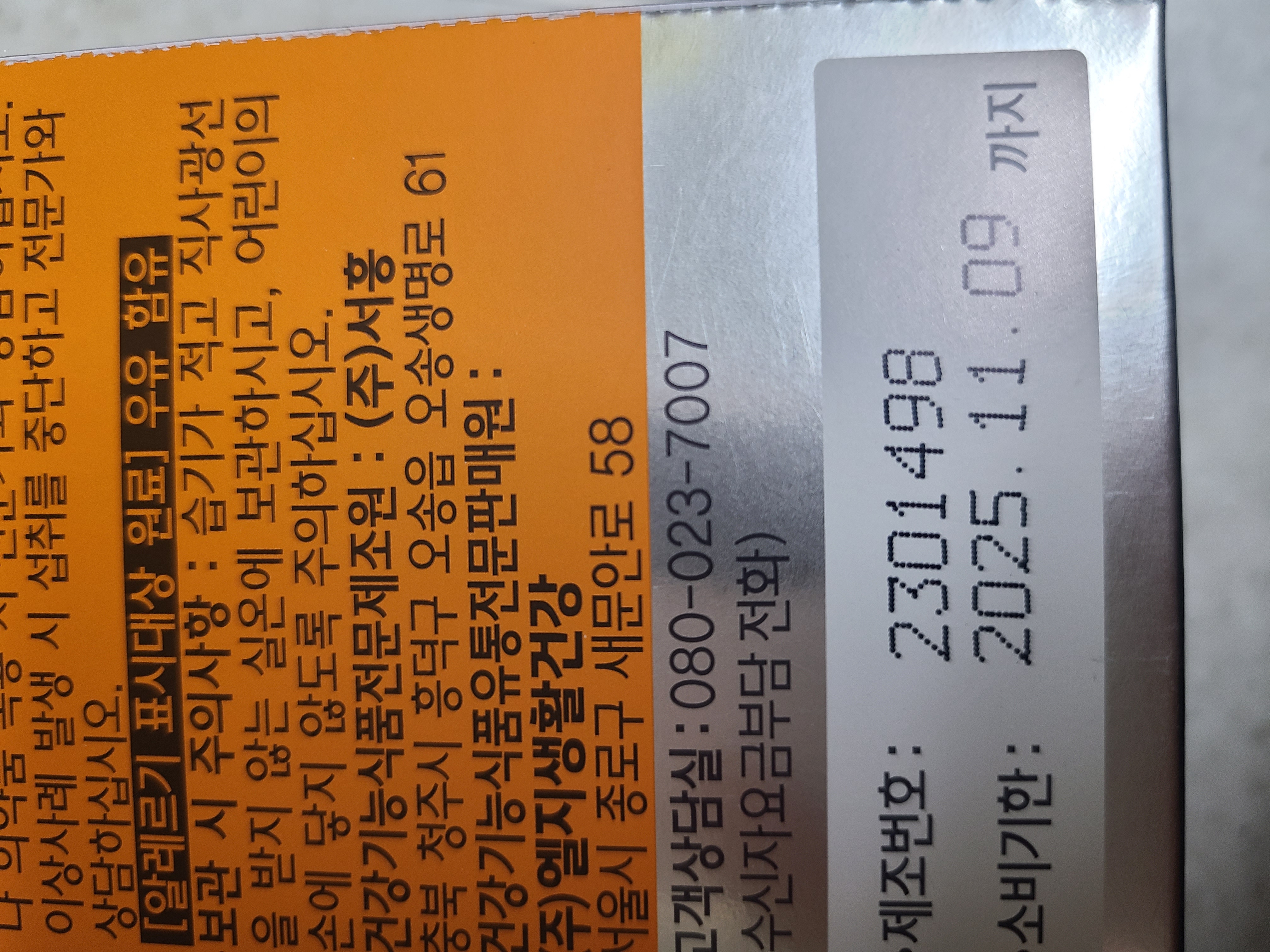 | 소비자상담 관련 전화번호 | 080-023-7007 (수신자 부담 번호) |