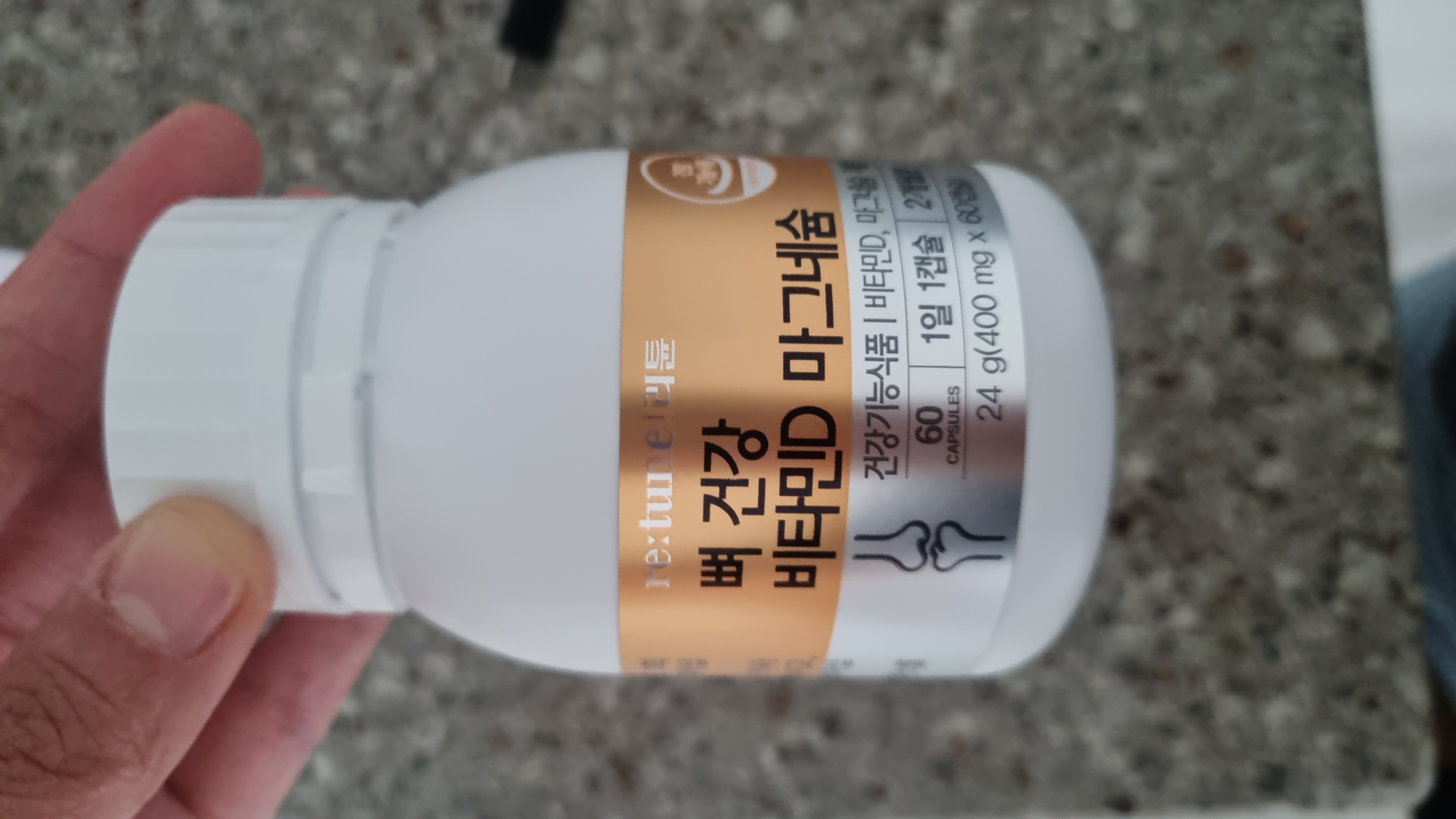 | 기능정보 | 비타민D 25 ㎍(250%), 마그네슘 157.5 mg(50%) 비타민D : 칼슘과 인이 흡수되고 이용되는데 필요, 뼈의 형성과 유지에 필요, 골다공증발생 위험 감소에 도움을 줌 / 마그네슘 : 에너지 이용에 필요, 신경과 근육 기능 유지에 필요 |