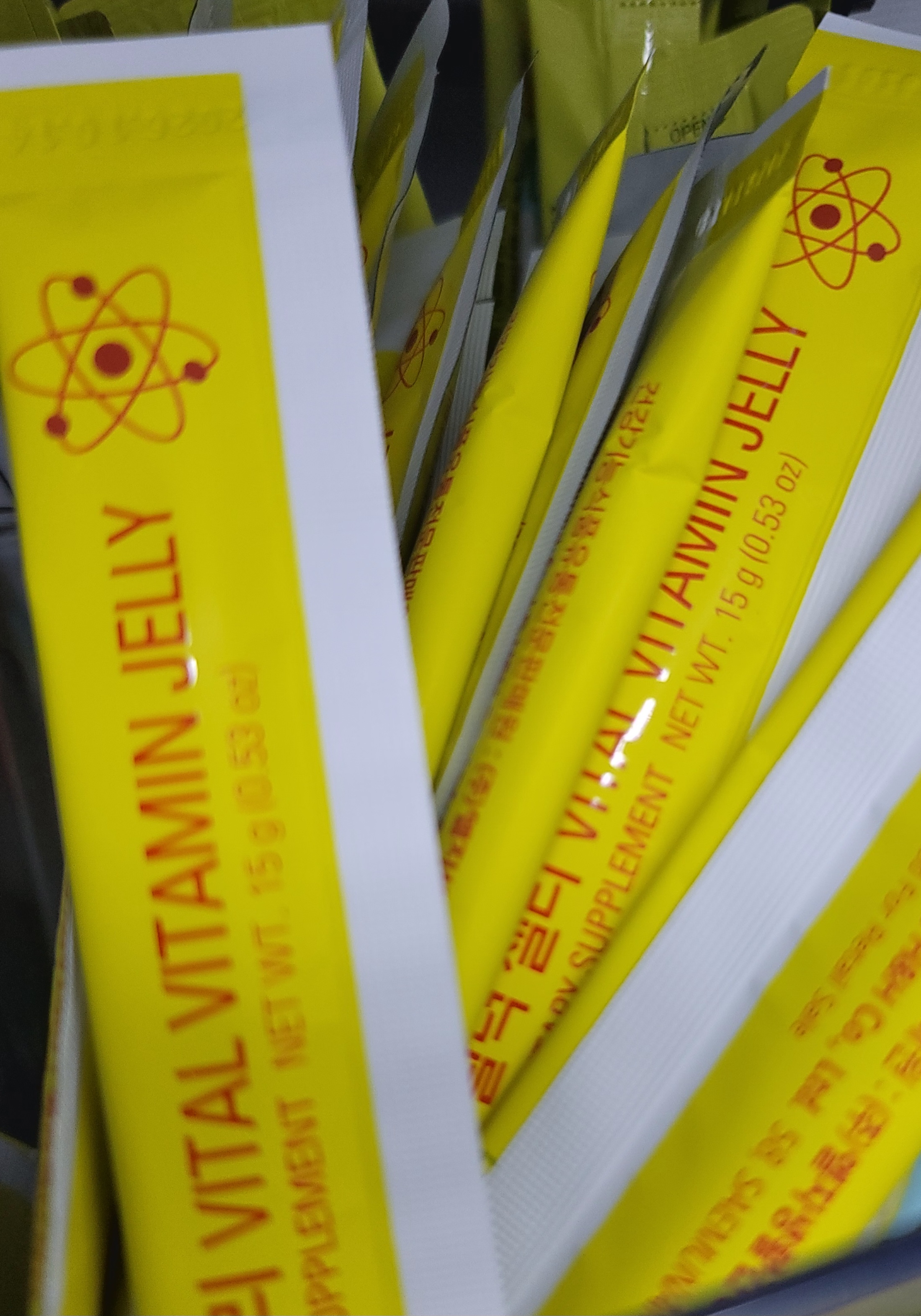 | 영양정보 | 1일 섭취량 :열량 20kcal, 탄수화물 4g(1%), 당류 3g(3%), 단백질 0g(0%), 지방 0g(0%), 나트륨 15mg(1%), 비타민B1 0.7mg(58%), 비타민B6 0.9mg(60%), 비타민D 5µg(50%), 비타민E 7mg α-TE(64%), 나이아신 9 mg NE(60%), 아연 6mg(71%) ※ ( )안의 수치는 1일 영양성분기준치에 대한 비율임 |