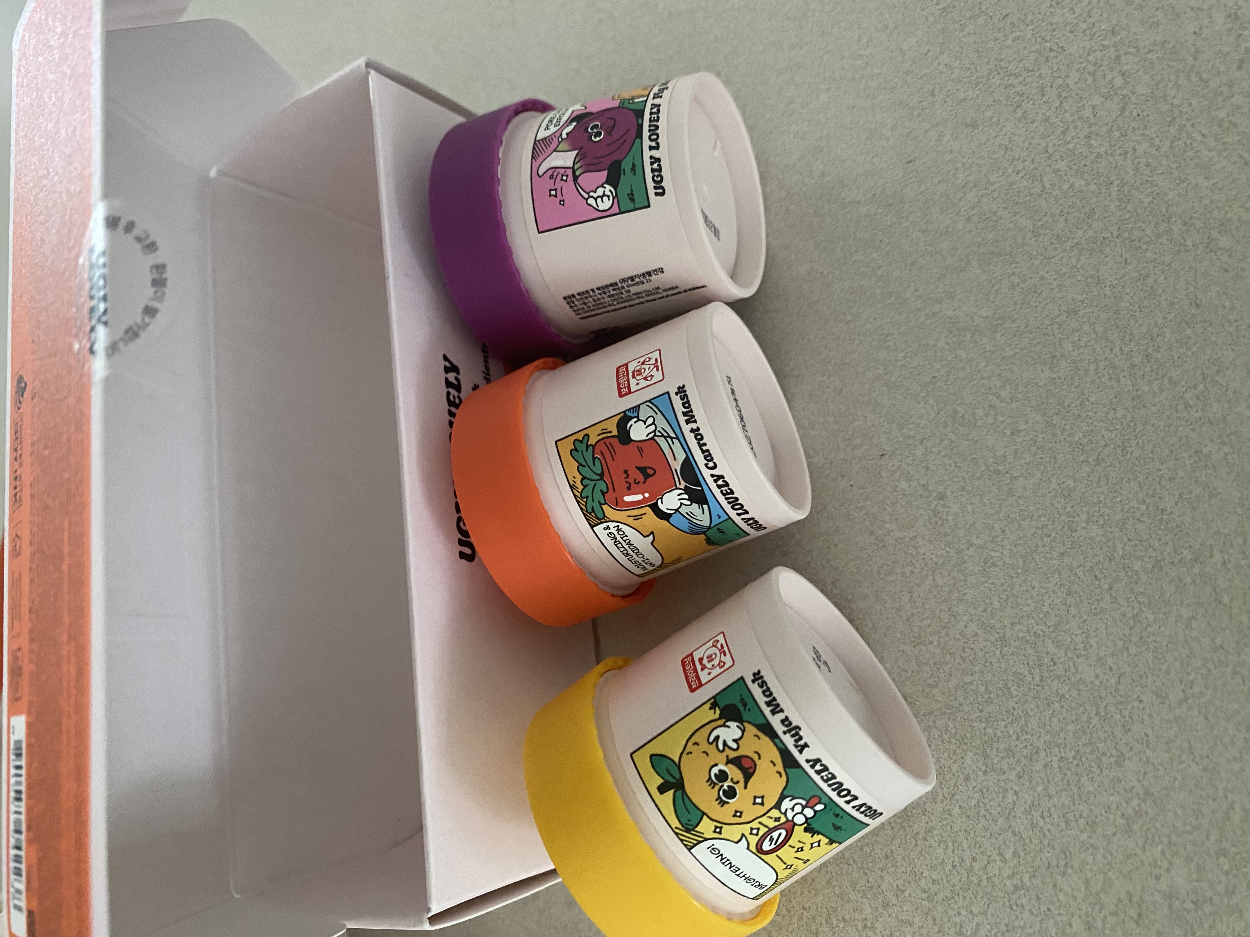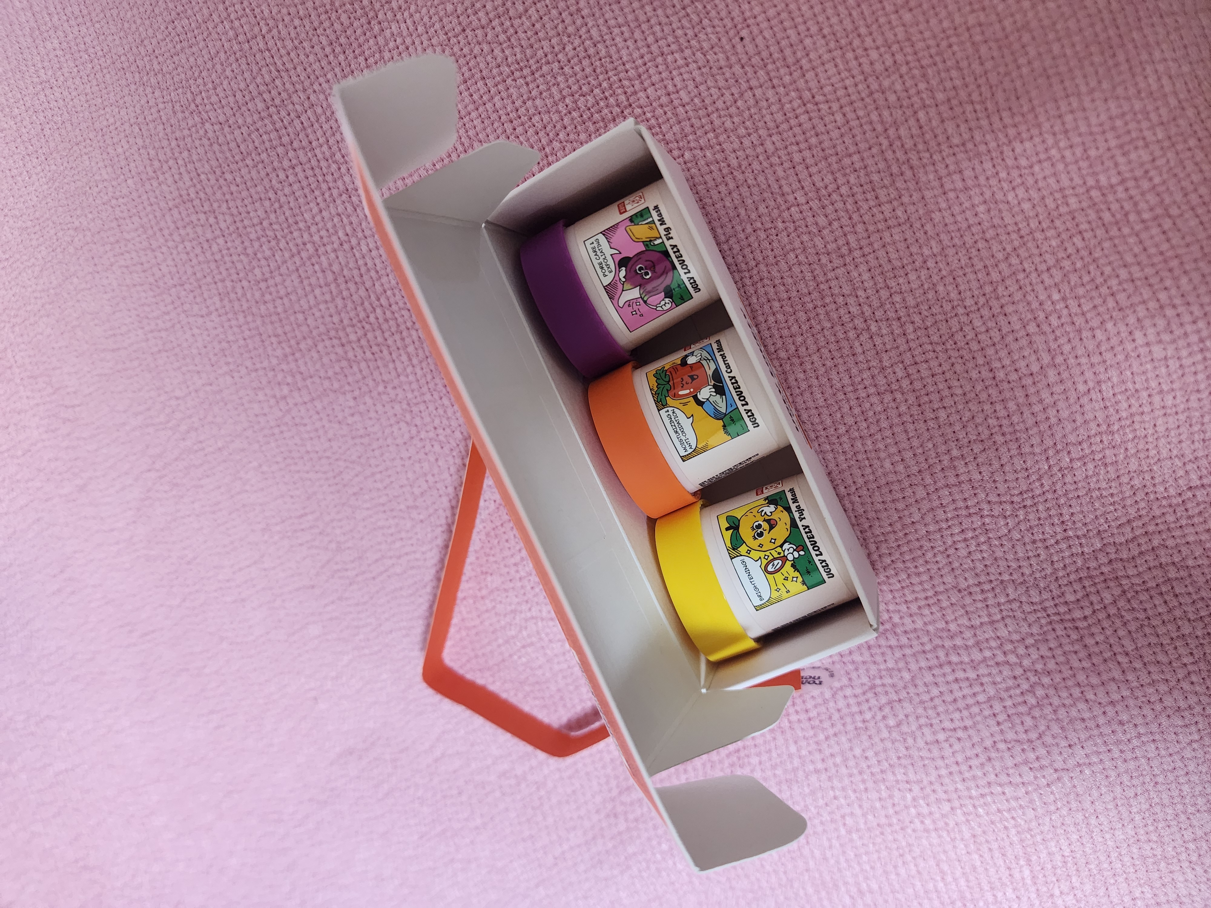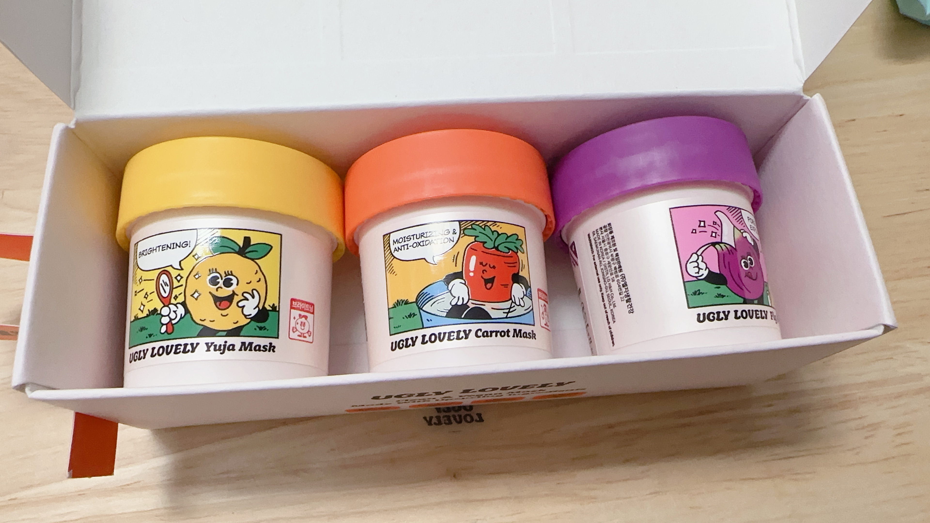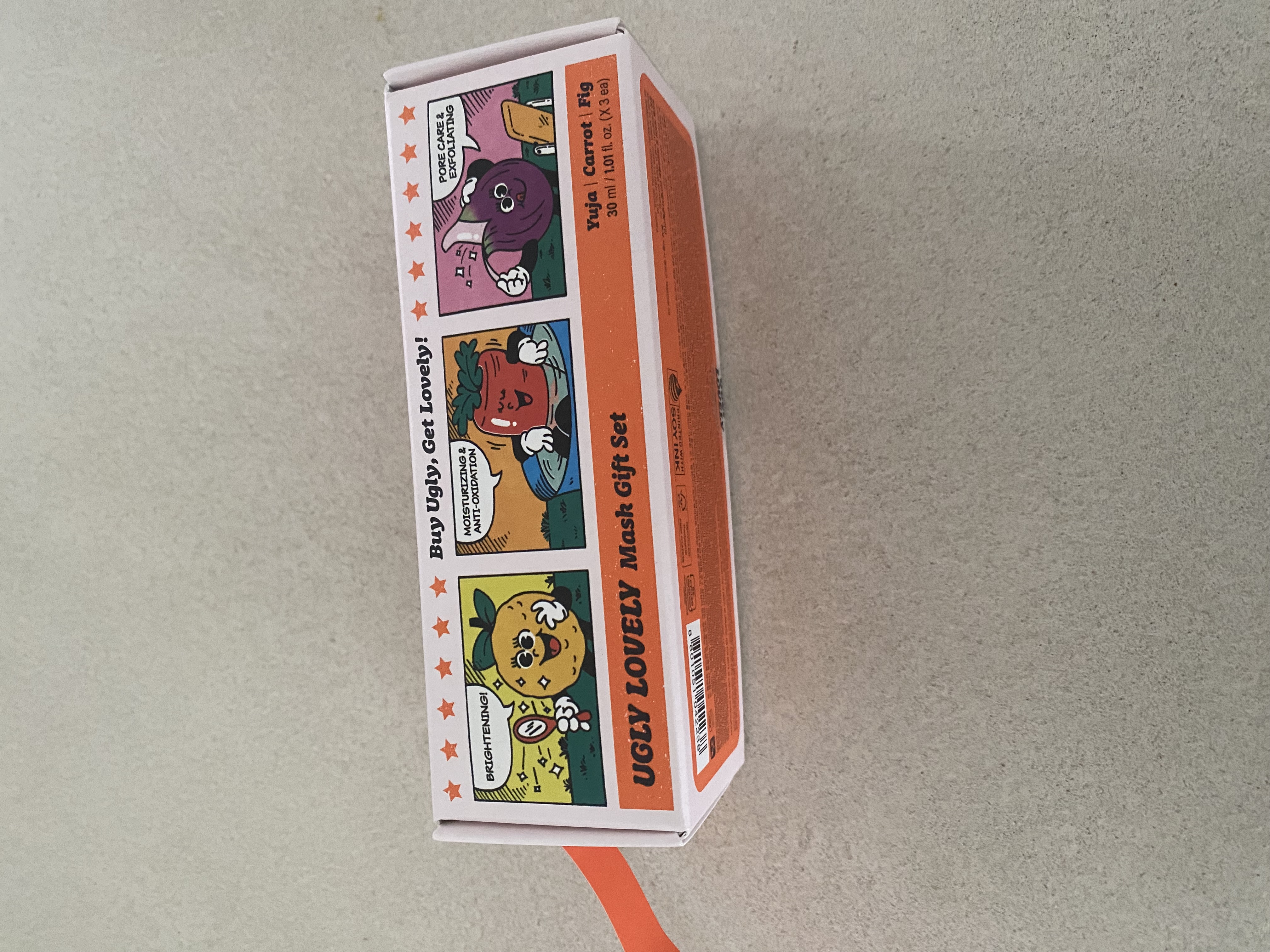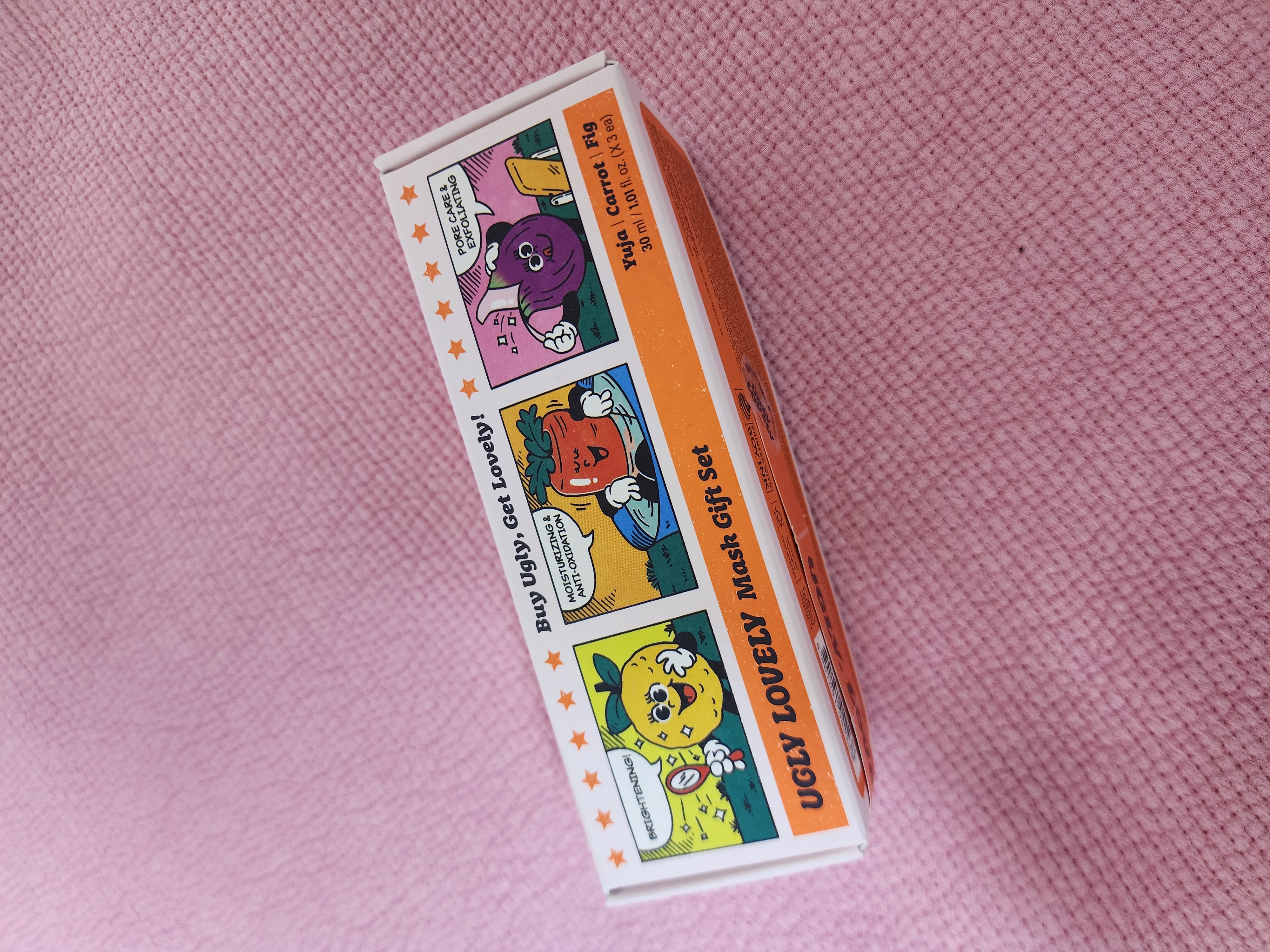 | 화장품법에 따라 기재·표시하여야 하는 모든 성분 | [캐롯] 정제수, 글리세린, 해바라기씨오일, 다이카프릴릴카보네이트, 글리세릴스테아레이트, 1,2-헥산다이올, 세틸알코올, 판테놀, 베타인, 폴리글리세릴-3메틸글루코오스다이스테아레이트, 부틸렌글라이콜, 세테아릴올리베이트, 나이아신아마이드, 글리세릴스테아레이트시트레이트, 마카다미아씨오일폴리글리세릴-6에스터스베헤네이트, 지치뿌리추출물, 마카다미아씨오일, 당근추출물(40 ppm), 토코페롤, 솔비탄올리베이트, 팔미틱애씨드, 스테아릭애씨드, 락토바실러스/콩발효추출물, 오렌지껍질오일, 효모/감자추출물발효여과물, 효모/보리씨발효여과물, 잇꽃꽃추출물, 덱스트린, 트로메타민, 트라이소듐이디티에이, 잔탄검, 카보머, 멕시칸주니퍼오일, 돌콩오일, 리모넨 [유자] 글리세린, 정제수, 부틸렌글라이콜, 폴리글리세릴-3메틸글루코오스다이스테아레이트, 폴리글리세릴-10베헤네이트/에이코사디오에이트, 폴리글리세릴-10스테아레이트, 트레할로오스, 1,2-헥산다이올, 나이아신아마이드, 유자껍질오일(4000 ppm), 유자추출물(2 ppm), 세린, 알지닌, 덱스트린, 아스코빅애씨드, 잇꽃꽃추출물, 카카오씨추출물, 해바라기씨왁스, 카보머, 시트릭애씨드, 트로메타민, 리모넨, 리날룰 [피그] 카프릴릭/카프릭트라이글리세라이드, 수크로오스, 트레할로오스, 스테아랄코늄헥토라이트, 트라이하이드록시스테아린, 부틸렌글라이콜, 폴리글리세릴-10다이아이소스테아레이트, 폴리글리세릴-6다이카프레이트, 프로필렌카보네이트, 글리세릴스테아레이트, 무화과추출물(50 ppm), 살구씨가루, 호두나무열매껍질가루, 글루코노락톤, 아세틸헥사펩타이드-8, 카카오씨추출물, 솔비탄세스퀴올리에이트, 글리세린, 정제수, 덱스트린, 카프릴릴글라이콜, 1,2-헥산다이올, 오렌지껍질오일, 라임전초오일, 클로브싹오일, 일랑일랑꽃오일, 피마자씨오일, 3-헥센올, 벤질살리실레이트, 리날룰, 제라니올, 리모넨, 시트로넬올, 유제놀, 시트랄 |