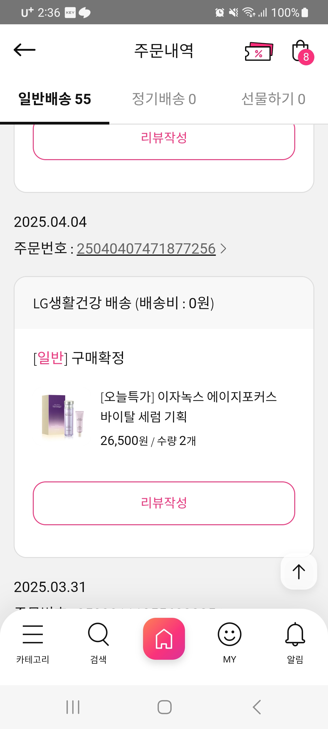 리뷰작성 시 100P 추가적립 - 배송