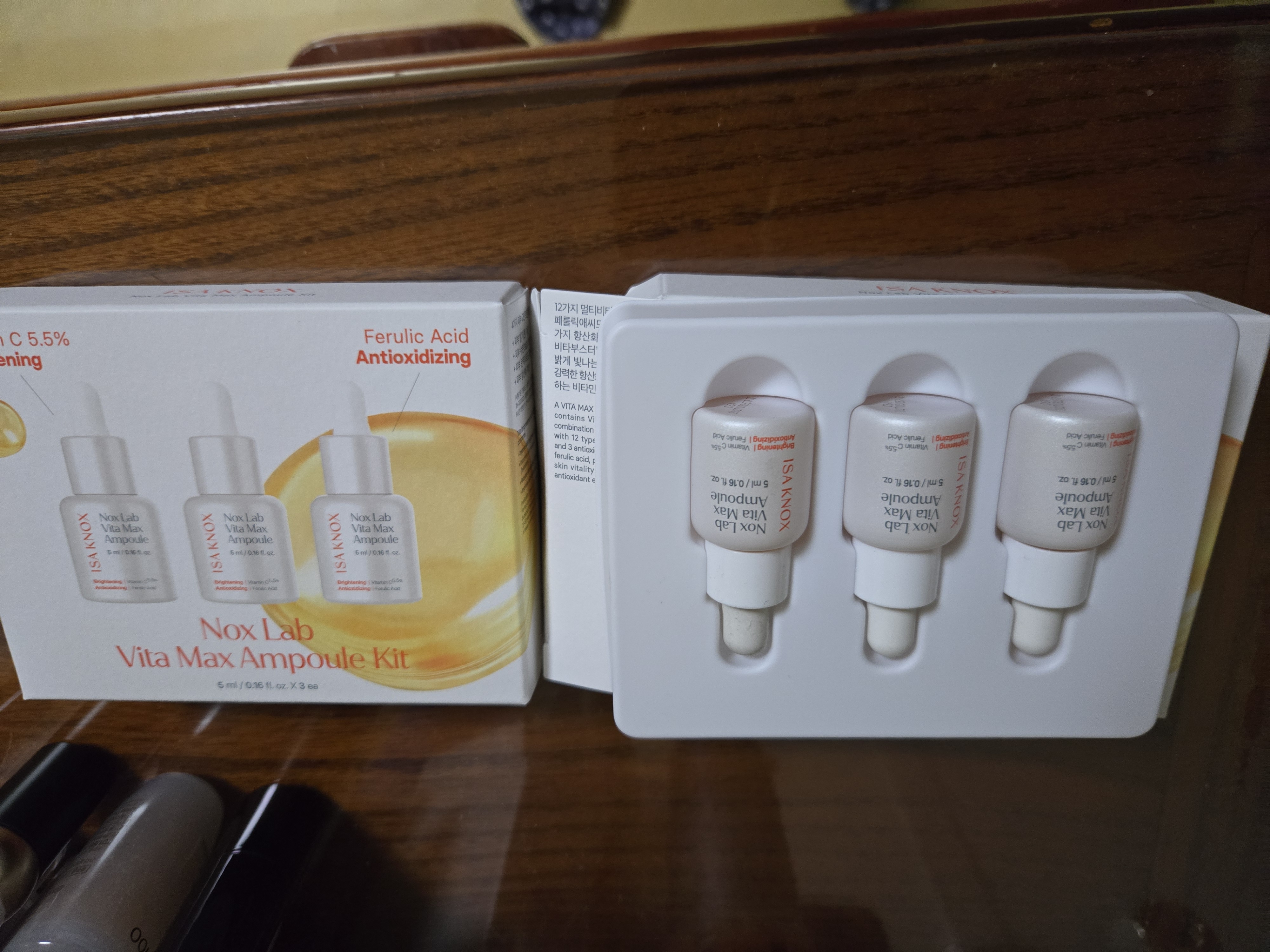 | 화장품법에 따라 기재·표시하여야 하는 모든 성분 | 정제수, 다이프로필렌글라이콜, 프로판다이올, 아스코빅애씨드(5.5%), 글리세린, 2,3-부탄다이올, 변성알코올, 판테놀(2.5%), 에칠아스코빌에텔(3-O-에틸아스코빅애씨드)(2%), 글라이코실트레할로오스, 하이드로제네이티드스타치하이드롤리세이트, 트로메타민, 솔비톨, 폴리글리세릴-10스테아레이트, 락토바실러스/소이밀크발효여과물, 락토바실러스/호밀가루발효물, 바실러스/소이빈발효추출물, 메틸프로판다이올, 폴리글리세릴-10올리에이트, 페룰릭애씨드, 피리독신에이치씨엘(1000 ppm), 글루코실헤스페리딘(100 ppm), 토코페롤(54 ppm), 나이아신아마이드(10 ppm), 바이오틴(10 ppm), 판토테닉애씨드(4 ppm), 폴릭애씨드(4 ppm), 티아민에이치씨엘(1 ppm), 피리독신(0.5 ppm), 리놀레익애씨드(0.2 ppm), 사이아노코발아민(0.1 ppm), 잇꽃꽃추출물, 로즈마리추출물, 알란토인, 아데노신, 1,2-헥산다이올, 다이소듐이디티에이, 덱스트린, 소듐하이알루로네이트, 해바라기씨오일, 하이드로제네이티드레시틴, 수크로오스스테아레이트, 콜레스테롤, 세라마이드엔피, 팔미틱애씨드, 향료, 리모넨, 리날룰, 제라니올 |