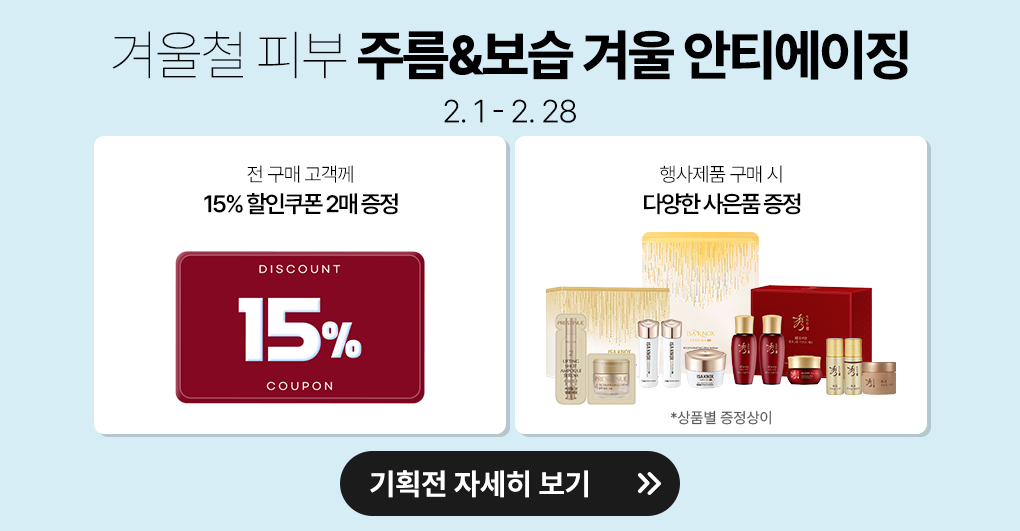 | 사용방법 | [스킨] 세안 후 손바닥에 적당량을 취해 얼굴 피부결을 따라 부드럽게 펴 발라 줍니다. [에멀전] 세럼 사용 후 손바닥에 적당량을 취해 얼굴 피부결을 따라 부드럽게 펴 발라 줍니다. [세럼] 스킨 사용 후 에센스 첫 단계에 적당량을 손바닥에 펌핑하여 얼굴 피부결을 따라 부드럽게 펴 바른 후 손바닥으로 얼굴을 감싸며 깊숙이 흡수시킵니다. [크림] 기초 손질 마지막 단계에서 적당량을 취해 얼굴 전체에 피부결을 따라 부드럽게 펴 바른 다음 양 손바닥을 비벼 따뜻한 기운을 담아 얼굴을 감싸며 깊숙이 흡수시킵니다. |