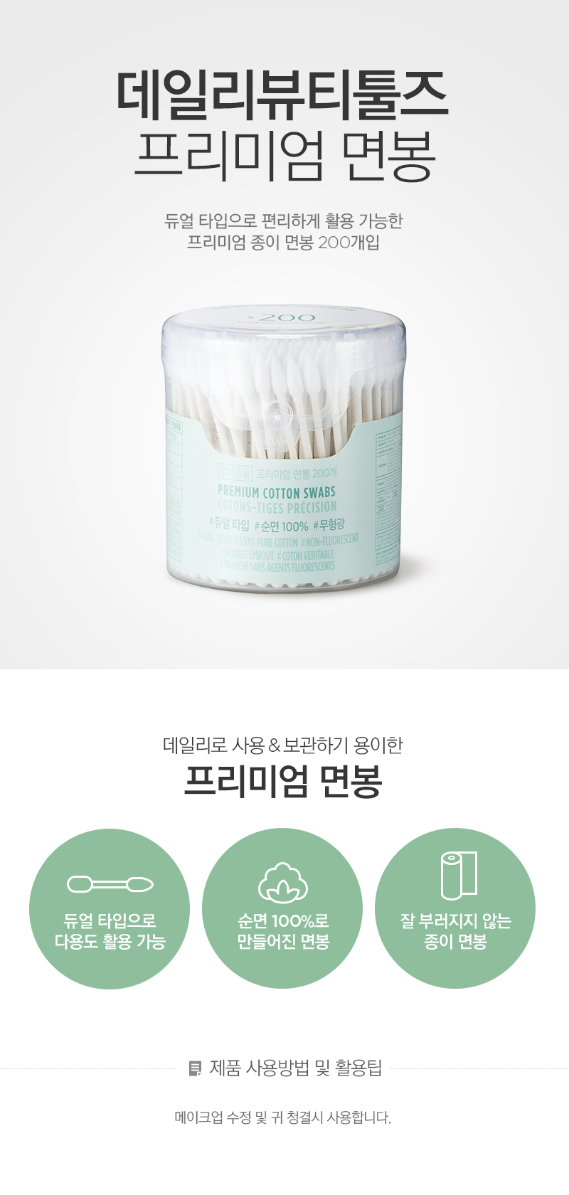 | 사용방법 | 메이크업 수정 및 귀 청결 시 사용합니다. |