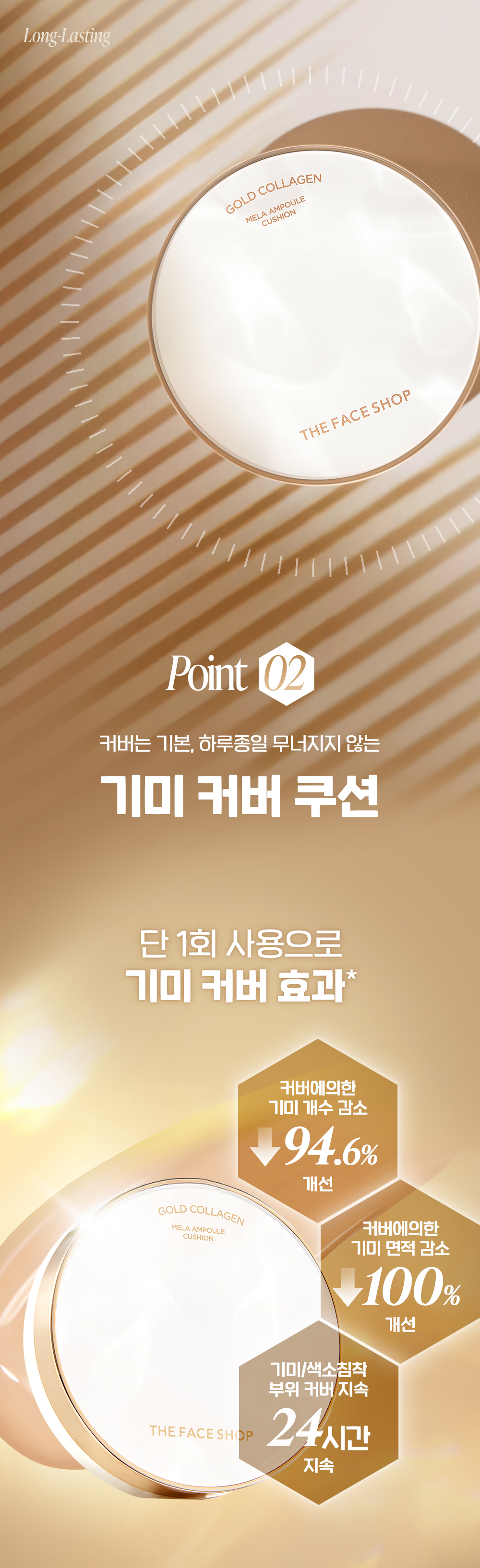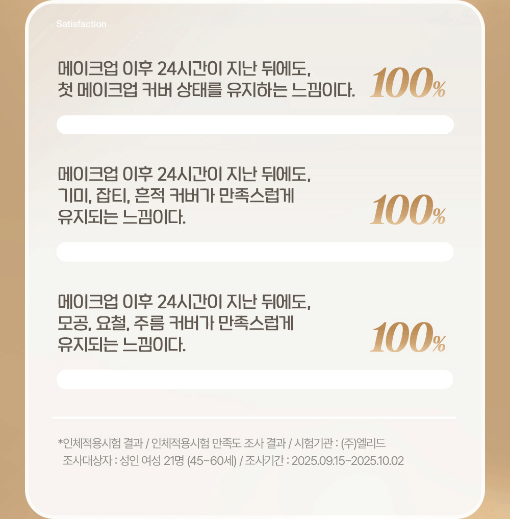 | 화장품법에 따라 기재·표시하여야 하는 모든 성분 | 정제수, 메틸트라이메티콘, 다이페닐실록시페닐트라이메티콘, 다이메티콘, 티타늄디옥사이드, 페닐트라이메티콘, 글리세린, 다이프로필렌글라이콜, 라우릴피이지-9폴리다이메틸실록시에틸다이메티콘, 페닐벤즈이미다졸설포닉애씨드, 합성플루오르플로고파이트, 다이아이소스테아릴말레이트, 나이아신아마이드, 트라이메틸실록시실리케이트, 트로메타민, 1,2-헥산다이올, 세틸피이지/피피지-10/1다이메티콘, 판테놀, 마그네슘/포타슘/실리콘/플루오라이드/하이드록사이드/옥사이드, 폴리메틸실세스퀴옥세인, 다이스테아다이모늄헥토라이트, 소듐클로라이드, 징크스테아레이트, 알루미늄하이드록사이드, 스테아릭애씨드, 다이메티콘/피이지-10/15크로스폴리머, 다이스테아릴다이모늄클로라이드, 팔미틱애씨드, 트라이에톡시카프릴릴실레인, 팔미토일프롤린, 아데노신, 마그네슘팔미토일글루타메이트, 소듐팔미토일사코시네이트, 바이오사카라이드검-1, 트라이에톡시실릴에틸폴리다이메틸실록시에틸헥실다이메티콘, 소듐파이루베이트, 스쿠알란, 알루미늄미리스테이트, 소듐시트레이트, 콜레스테롤, 부틸렌글라이콜, 에틸헥실글리세린, 글루타티온, 폴리다틴, 트라넥사믹애씨드, 토코페롤, 하이드로제네이티드레시틴, 변성알코올, 금(5 ppm), 카프릴릭/카프릭트라이글리세라이드, 하이드록시데실유비퀴논, 폴리글리세릴-10올리에이트, 진주추출물, 데사미도콜라겐(0.0001 ppm), 향료, 리모넨, 헥실신남알, 리날룰, 티타늄디옥사이드(CI 77891), 황색산화철, 적색산화철, 크로뮴하이드록사이드그린, 울트라마린 |