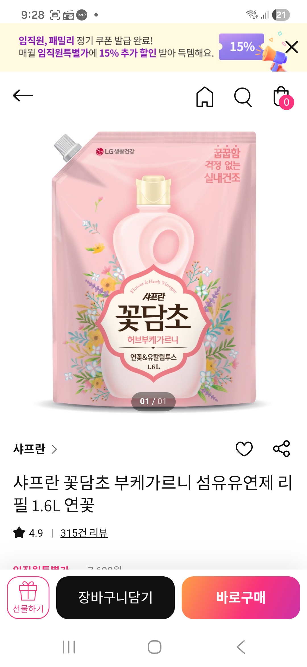 매번 주문하는 상품입니다. 향이 지속성이 있는지 주변인들이 무슨 유연제 있지 물어봅니다.