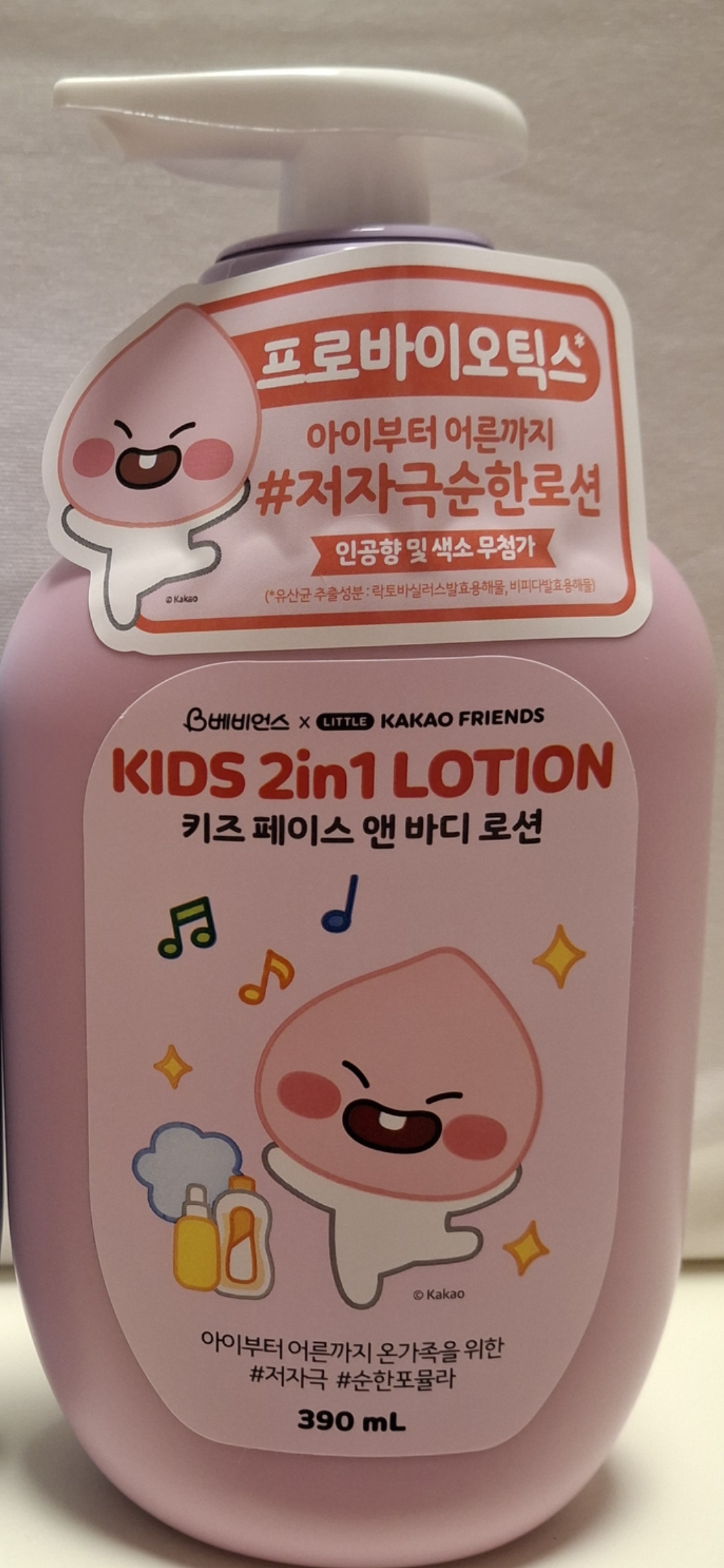 카카오 키즈 2in1페이스 앤 바디로션 어피치(390ml)
