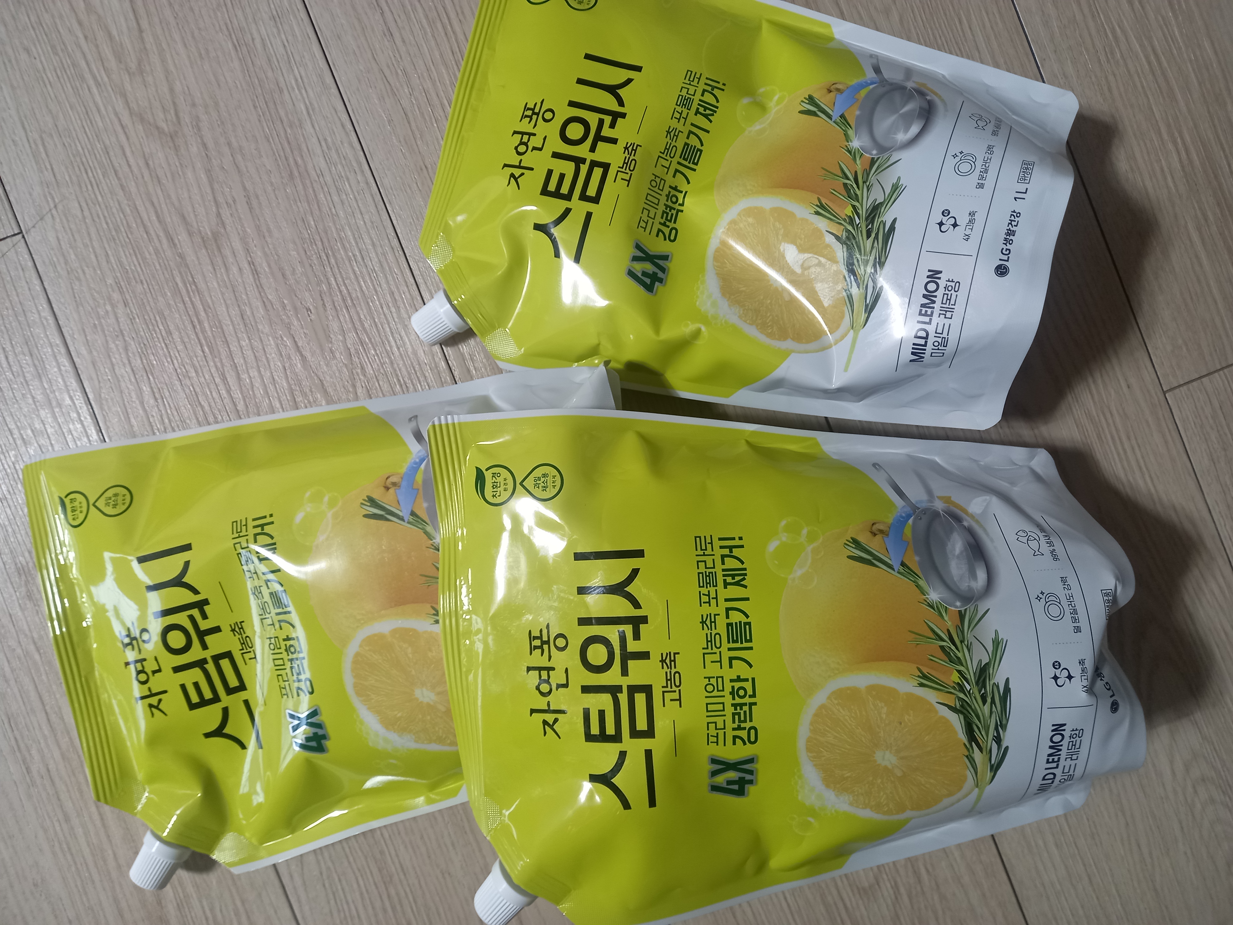 자연퐁 스팀워시 4X 주방세제 레몬향 R 1L X 3개