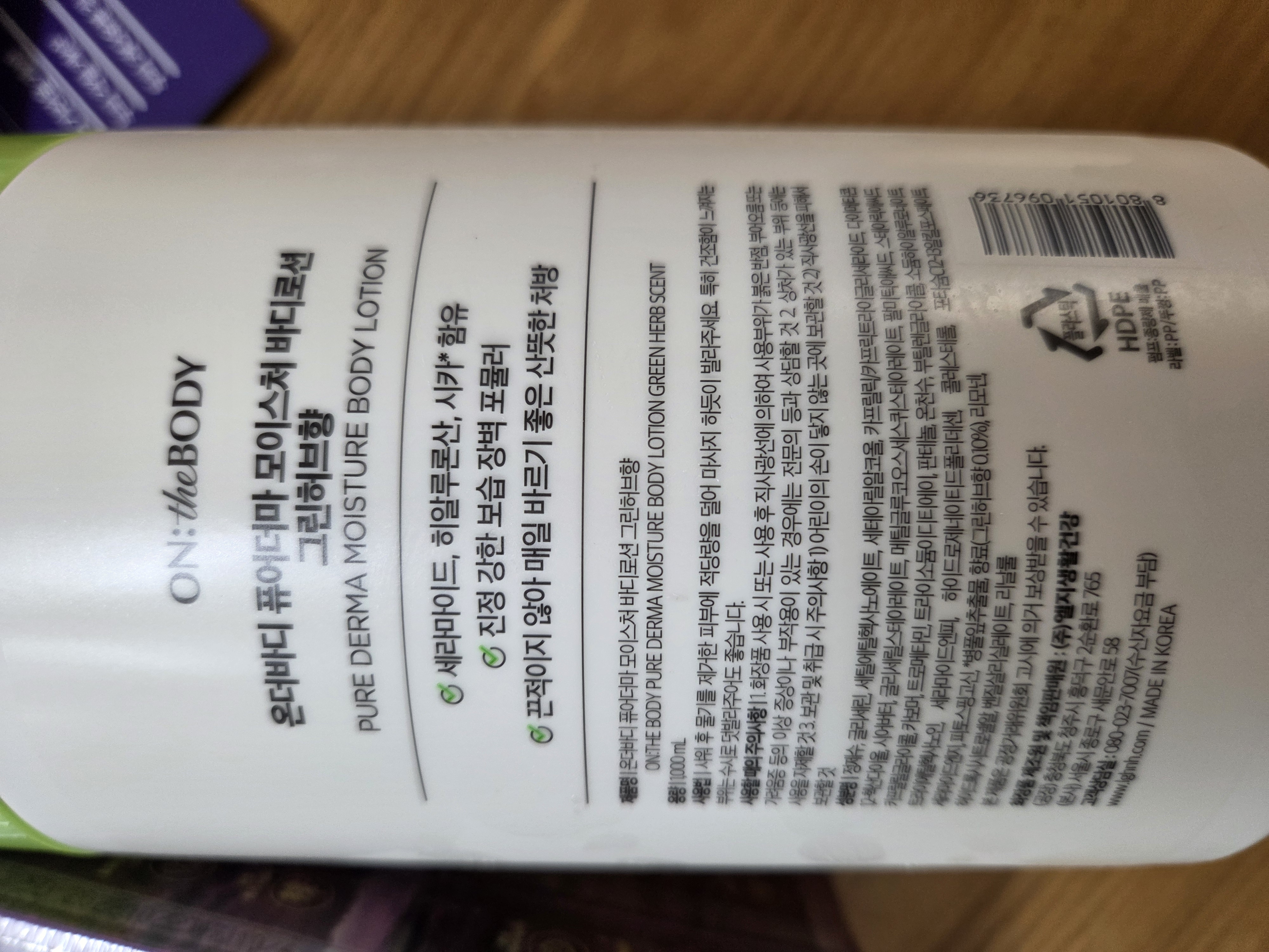 온더바디 퓨어더마 마일드 바디로션 그린허브향 1L