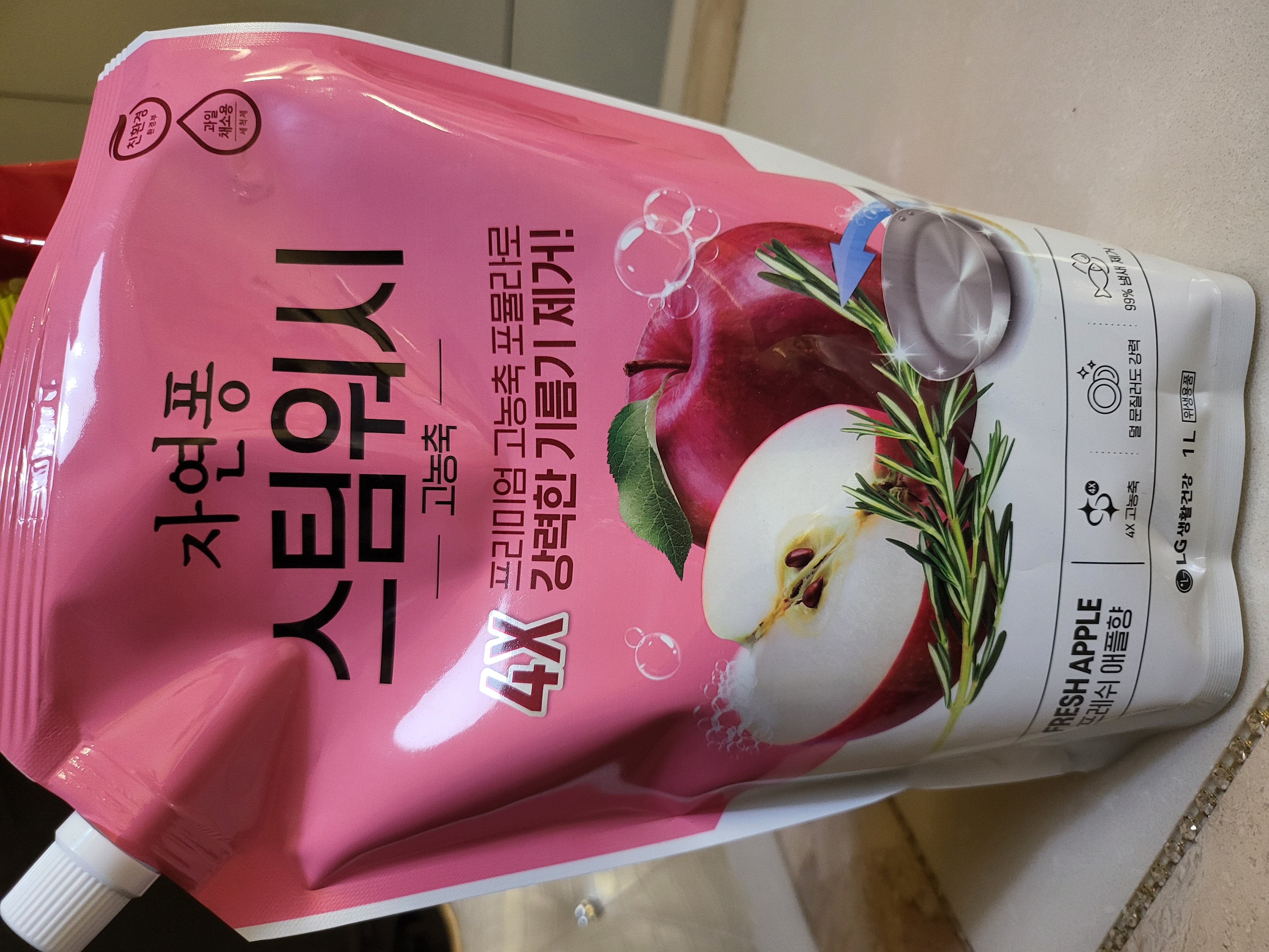 자연퐁 스팀워시 4X 주방세제 애플향 R 1L