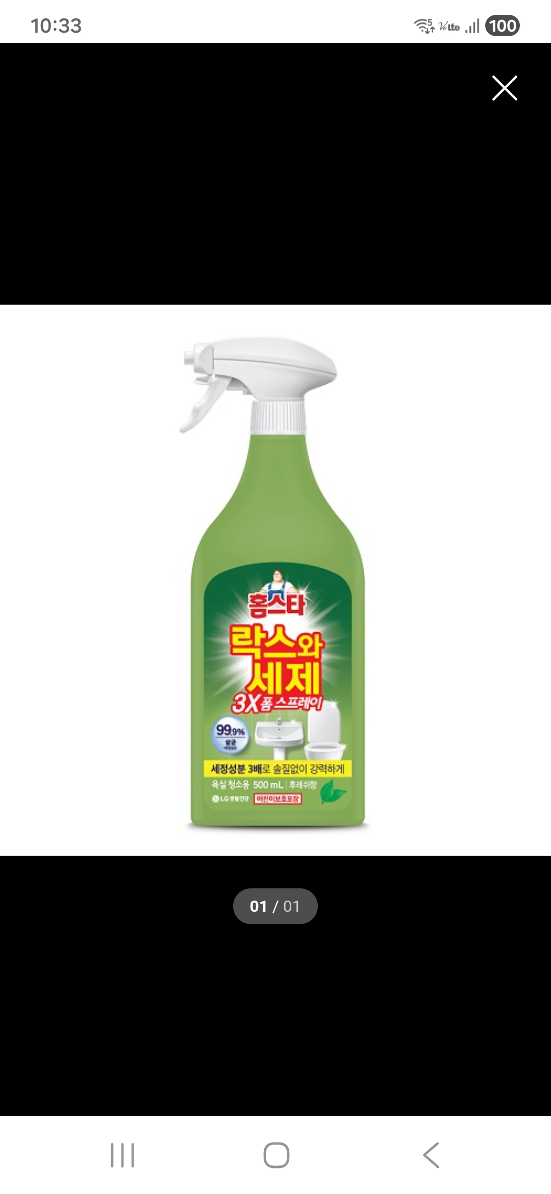 [품절] 홈스타 락스와세제 3X 폼 스프레이 후레쉬향 500ML