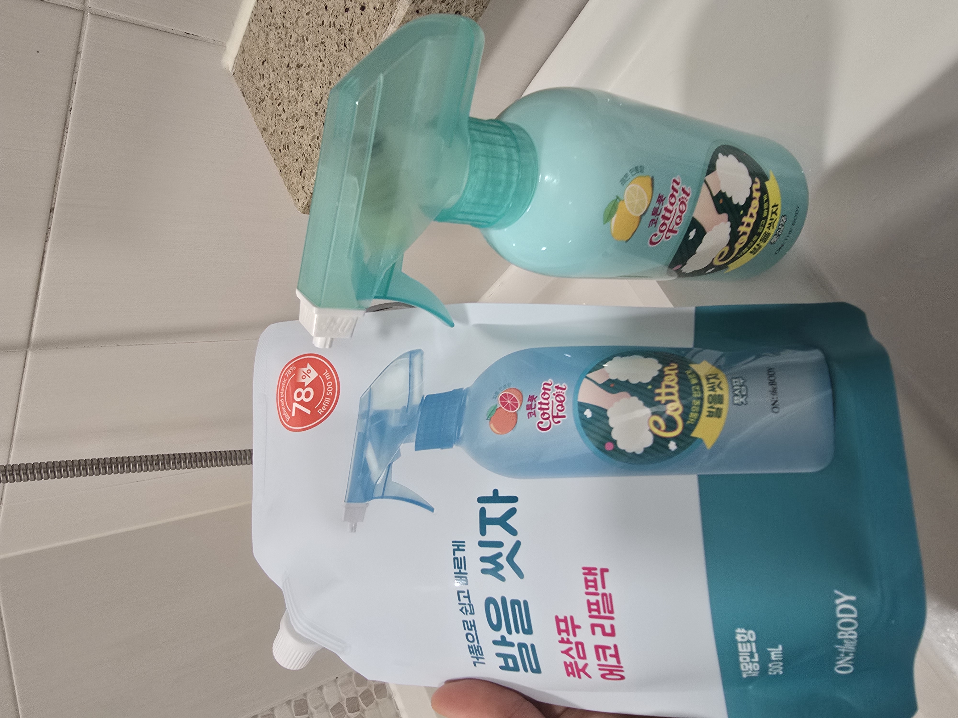 발 씻는 게 편해지고 즐거워졌어요. 귀찮아서 안 씻을 때가 있는데. 이 제품을 사용하고서는 냄새도 좋아서 매일 씻게 됩니다.