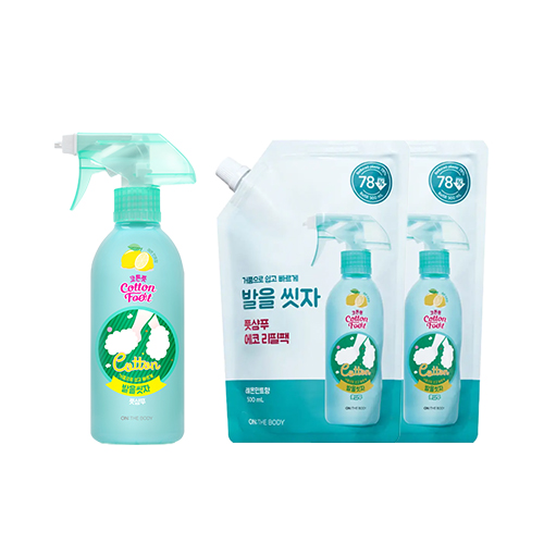 온더바디 코튼풋 발을씻자 풋샴푸 자몽 385ml 1개 + 리필 500ml 3개