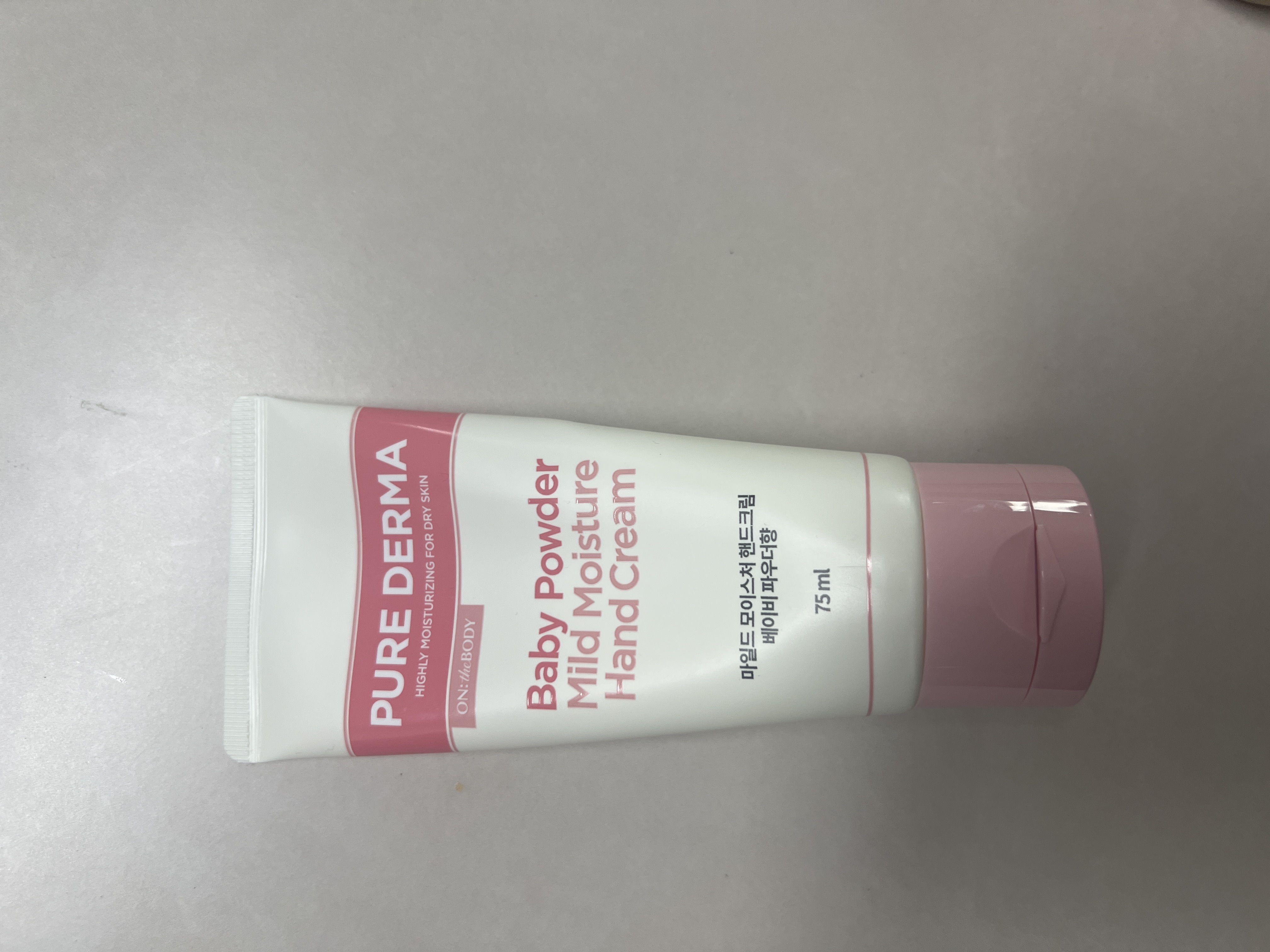 PURE DERMA 베이비 파우더 마일드 모이스처 핸드크림은 향이 정말 순하고 부드러워서 부담 없이 쓰기 좋아요.