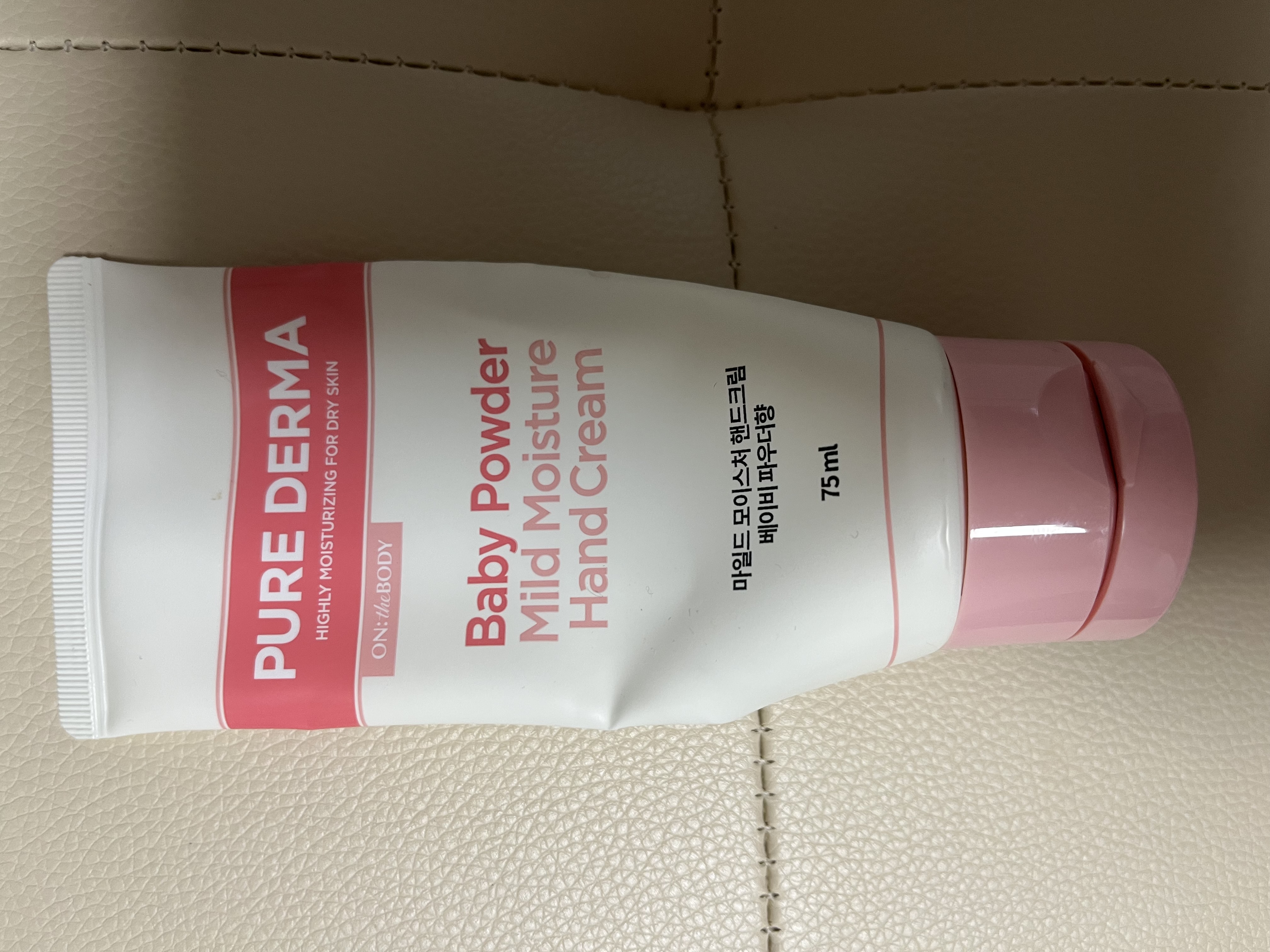 온더바디 퓨어더마 바디로션을 잘 사용하고 있어서, 핸드크림도 구입 했어요. 향은 익히 알고 있는 파우더향이라서 거부감 없구요. 발림성도 좋아요.
