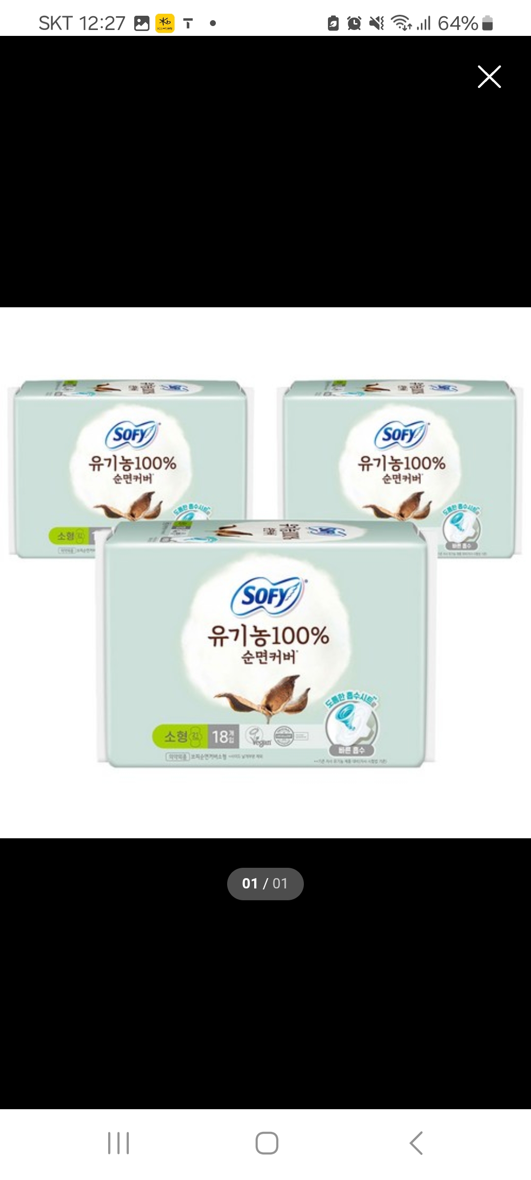 쏘피 유기농 패드형 생리대 소형 18P*3개