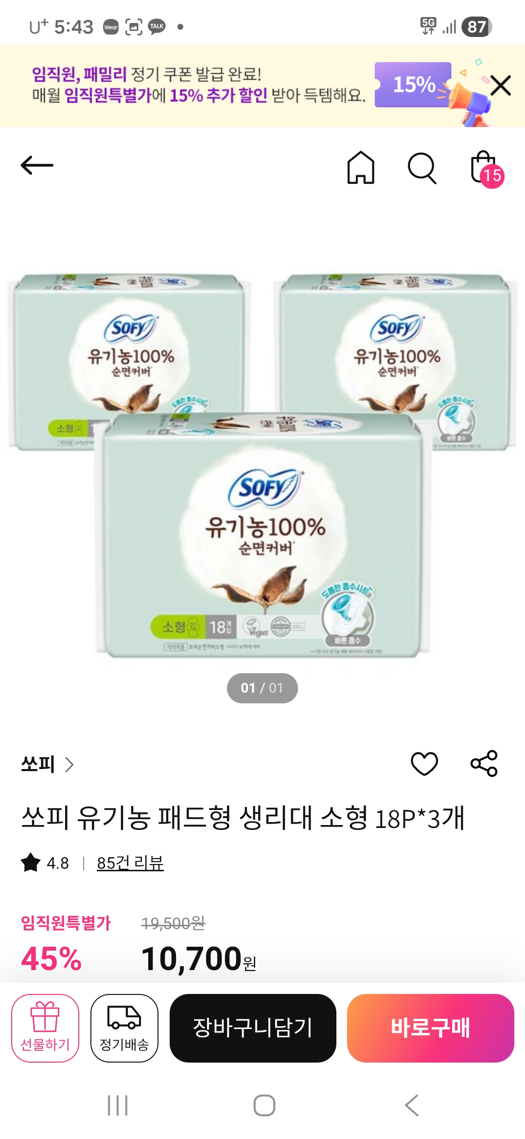 유기농 패드형이라 안심하고 구매합니다~~