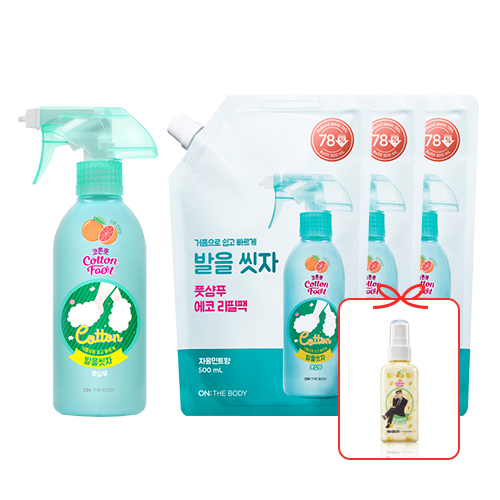 온더바디 코튼풋 발을씻자 풋샴푸 쿨링 리필500ml 3개 + 풋 미스트 80ml 증정