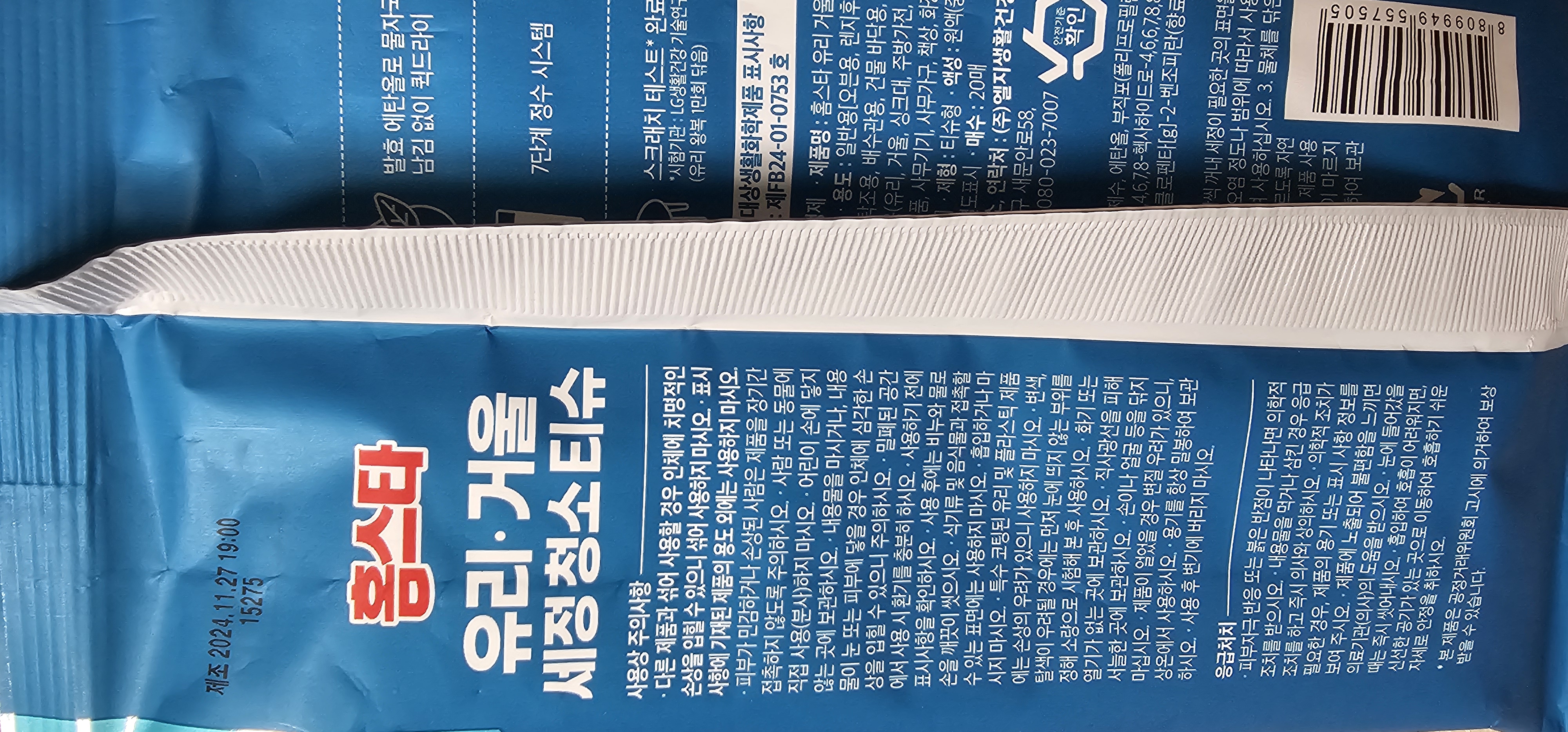 간편한 티슈 형태라. 화장실 거울 닦는데 편리하네요