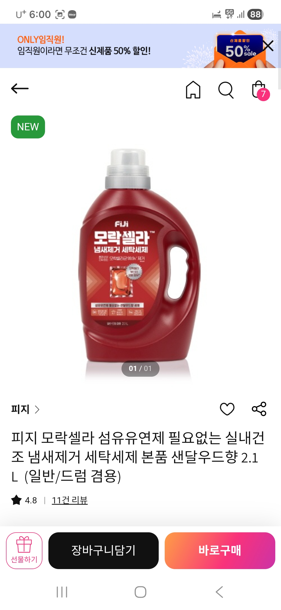 피지 모락셀라 섬유유연제 필요없는 실내건조 냄새제거 세탁세제 본품 샌달우드향 2.1L (일반/드럼 겸용)