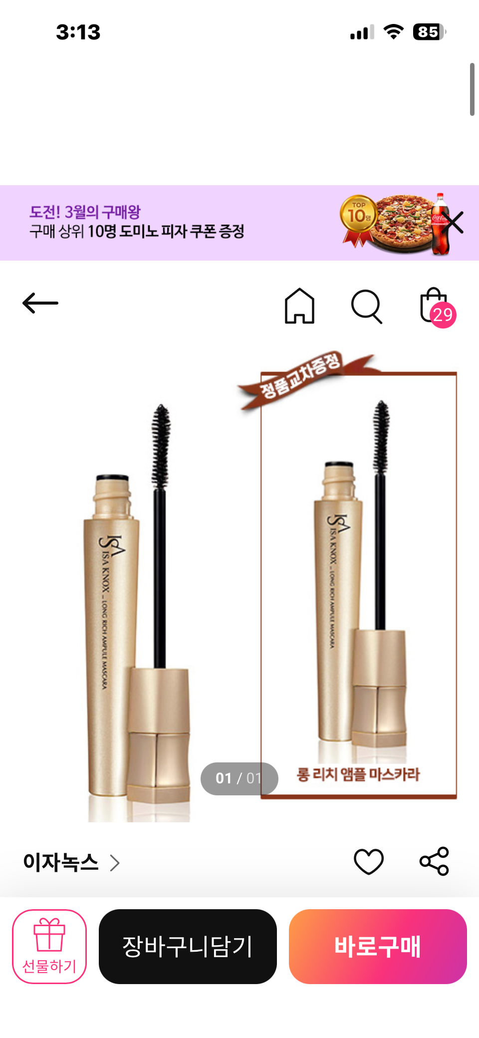 [쿠폰X] 정품증정 이자녹스 롱리치앰플마스카라 1+1