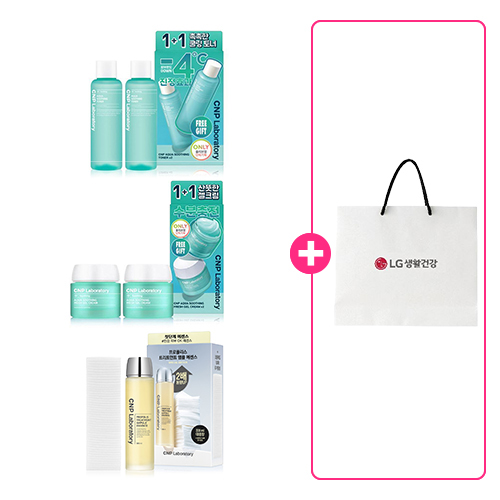 [26설] CNP 아쿠아 수딩토너 1+1기획 + 프레쉬젤크림 1+1기획+프로폴리스 트리트먼트 에센스 300ml +(증정)쇼핑백
