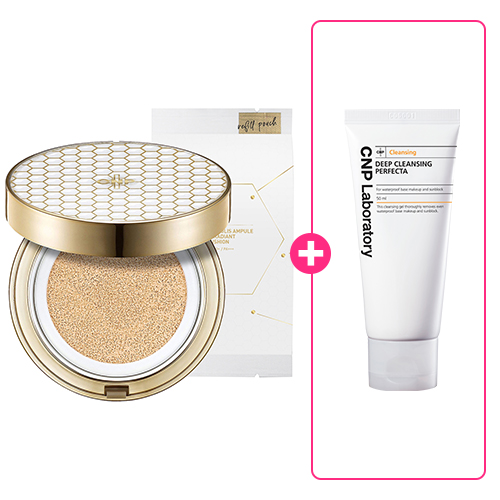 CNP 프로폴리스 앰플인 래디언트 쿠션 23호기획(본품+리필) +(증정) 딥클렌징 퍼펙타 50ml