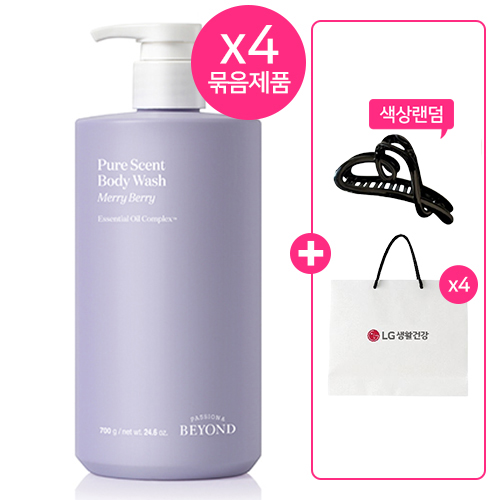 [26설]비욘드 퓨어센트 메리베리 바디워시 700mlx4개+(증정)하트 헤어집게핀+쇼핑백x4