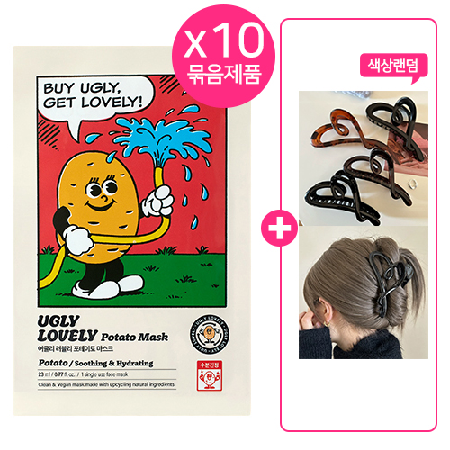 10개묶음 어글리러블리 마스크 포테이토23ml(비건) +(증정) 하트 헤어집게핀