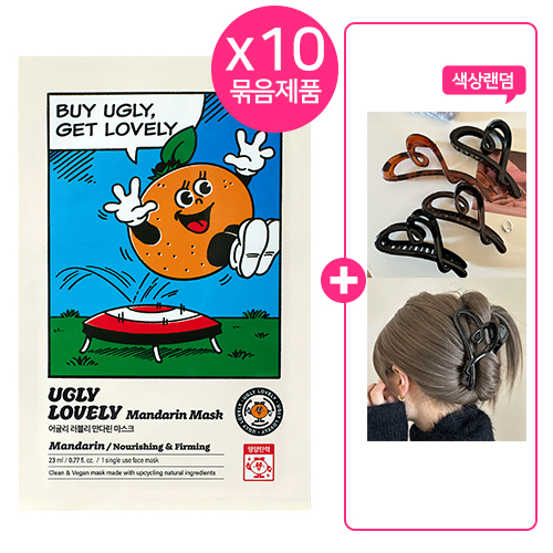 10개묶음 어글리러블리 마스크 만다린23ml(비건) +(증정) 하트 헤어집게핀