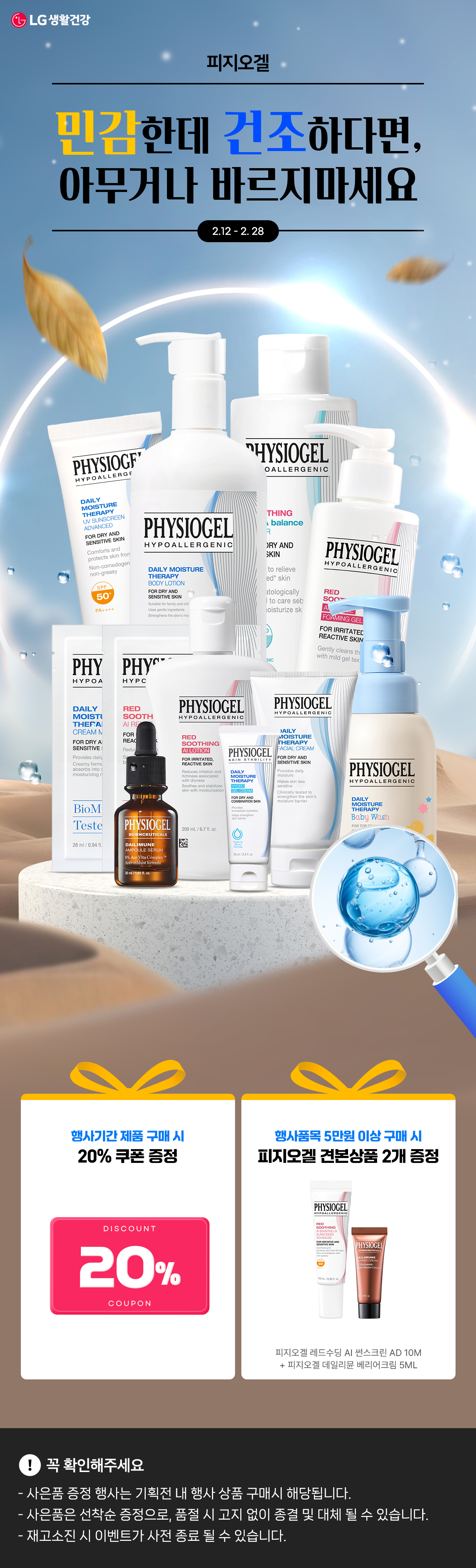 피지오겔 1원 이상 구매시 20% 할인쿠폰 (최대 100만원 할인)