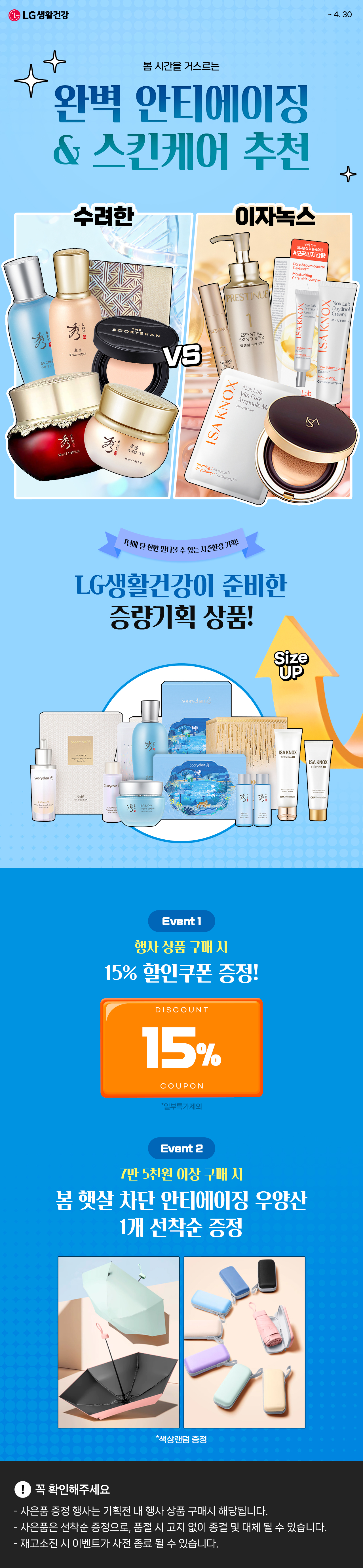 수려한 VS 이자녹스 기획전 1원 이상 구매시 15% 할인쿠폰 (최대 100만원 할인)