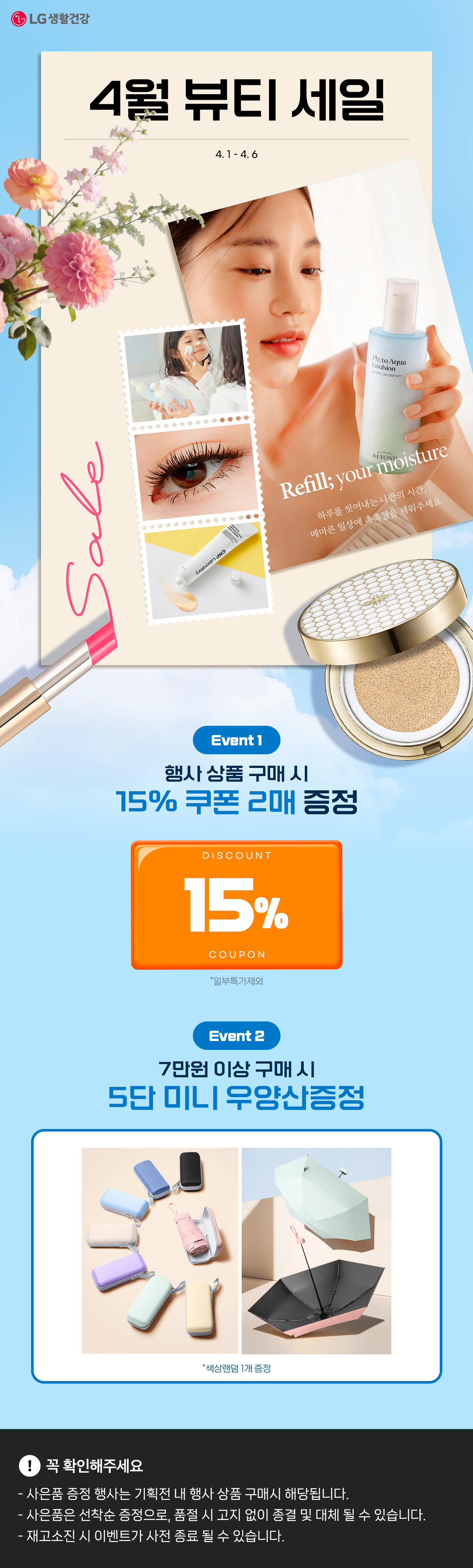 4월 뷰티 세일 기획전 제품 1원 이상 구매시 15% 할인쿠폰 (최대 100만원 할인)